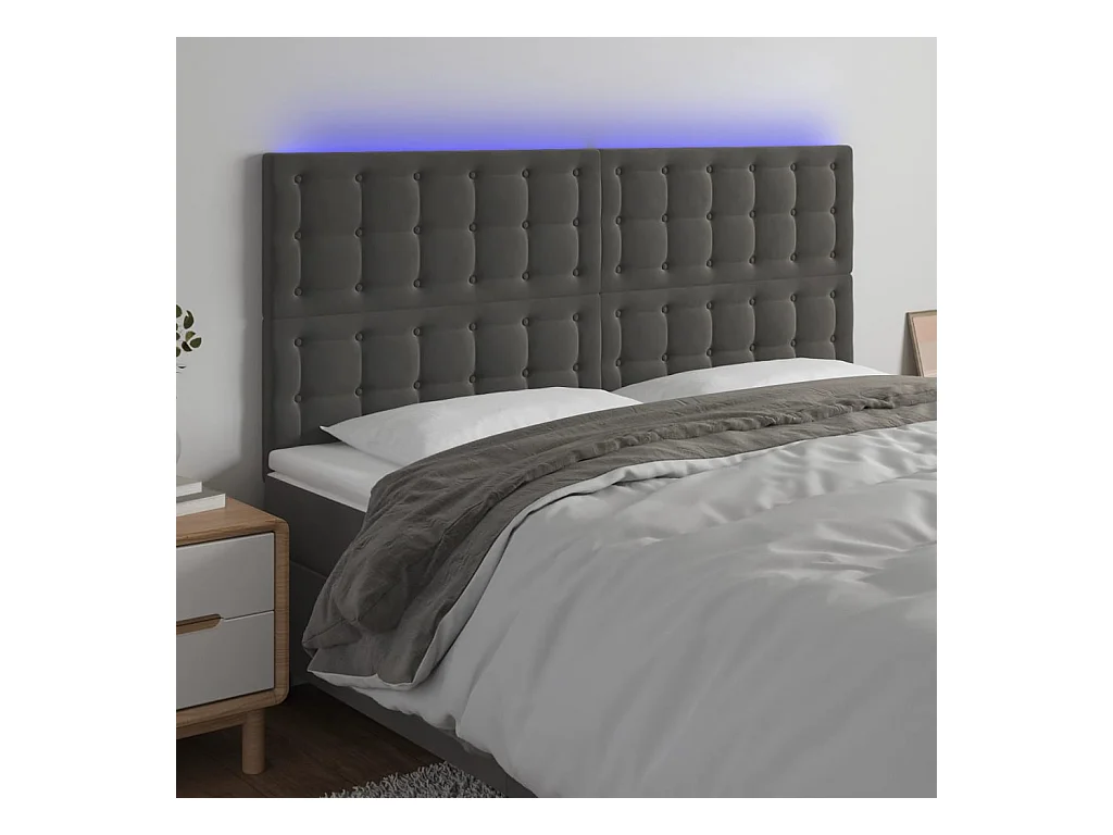 LED Hoofdbord Donkergrijs 180x5x118/128 cm Fluweel