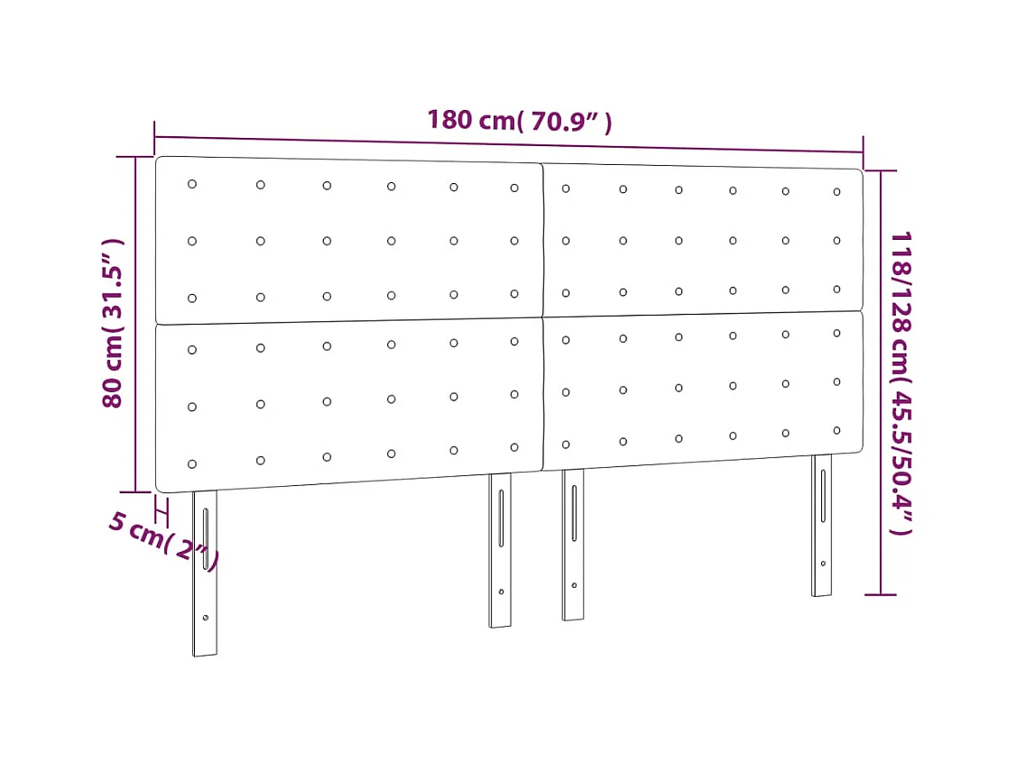 LED Hoofdbord Grijs 180x5x118/128 cm Kunstleer