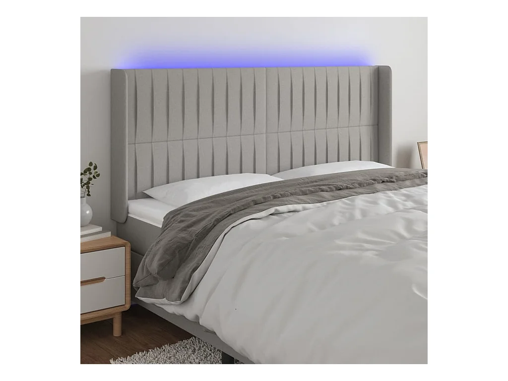 LED hoofdbord Lichtgrijs 183x16x118/128 cm Stof
