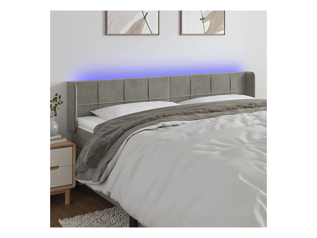 LED Hoofdbord Lichtgrijs 203x16x78/88 cm Fluweel
