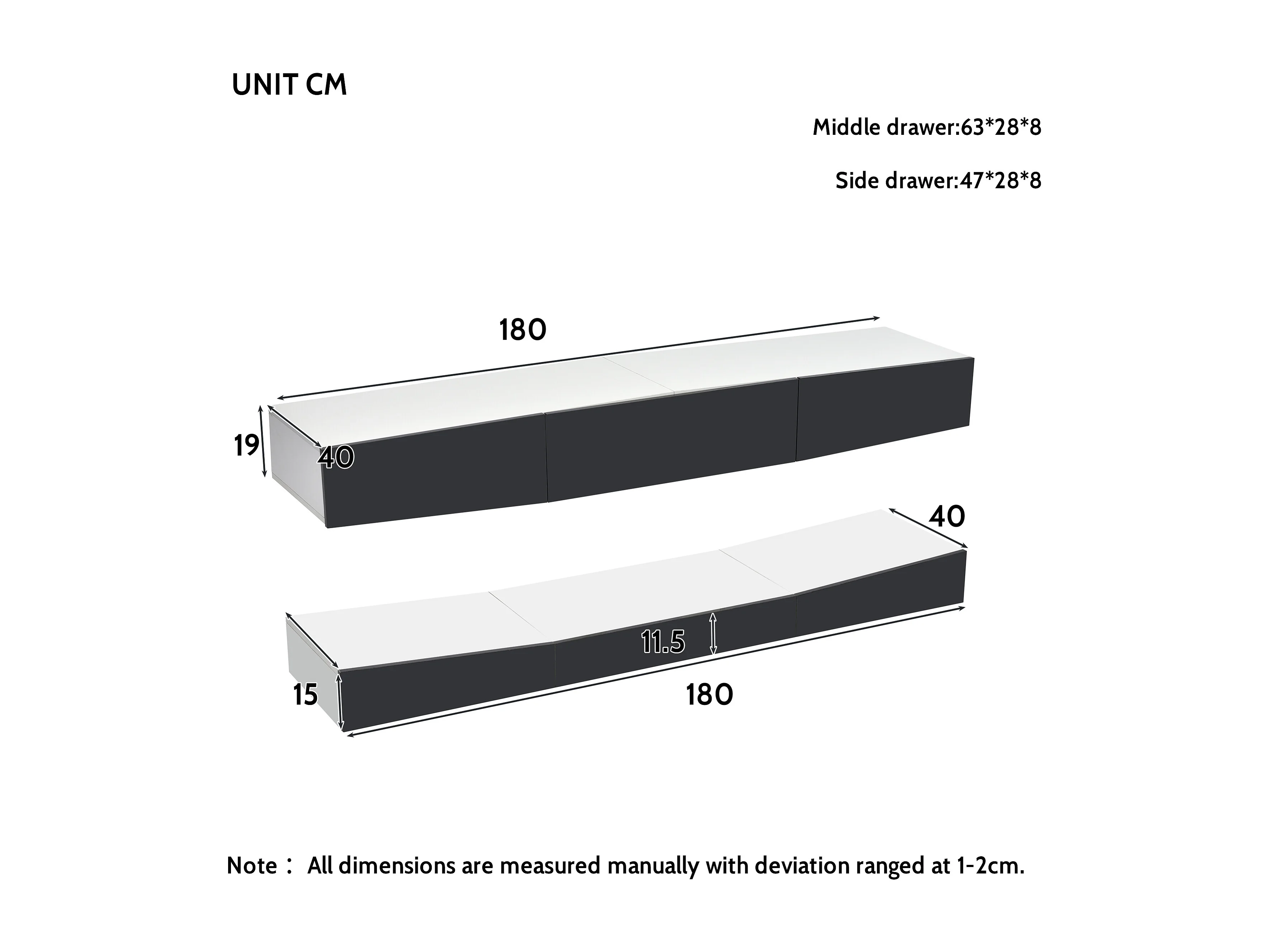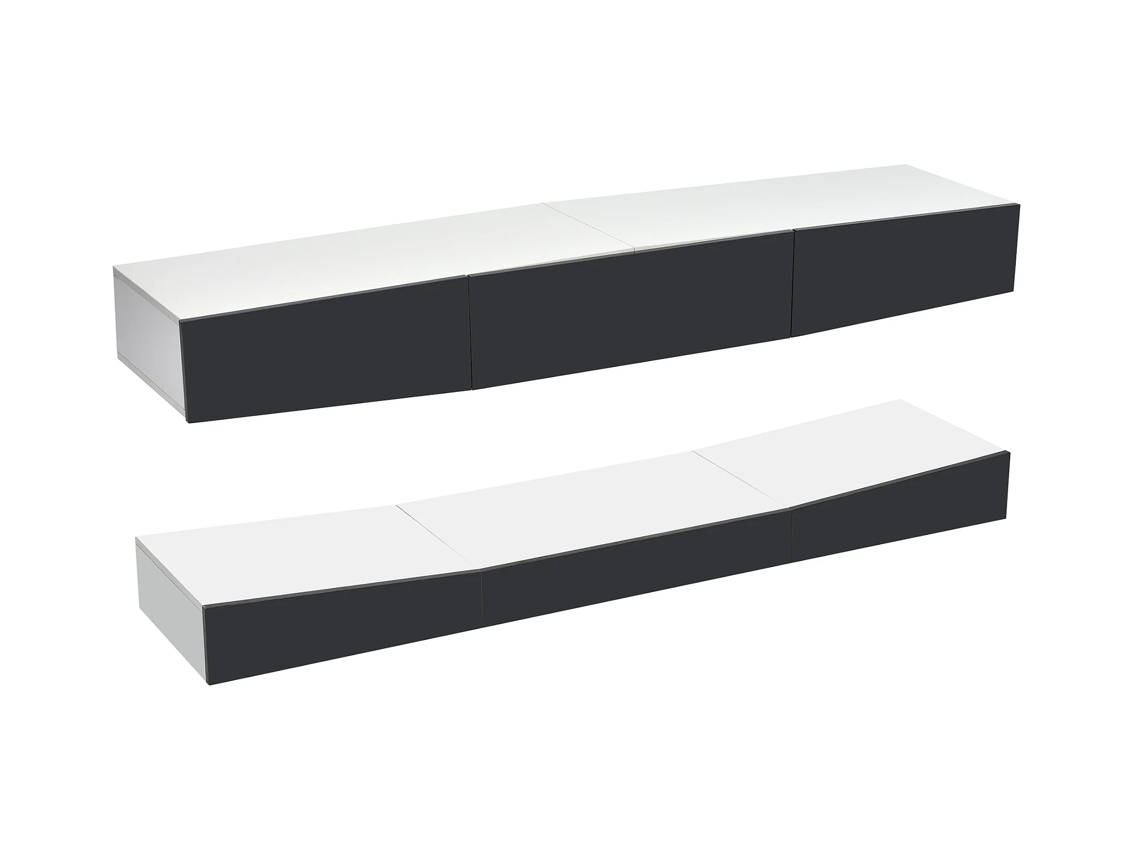 LED houten wandmeubel met 2 kasten, 3 lades en open opbergruimte - grijs (181x40x19 cm)