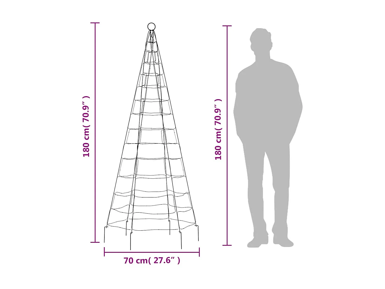 LED-kerstboom aan vlaggenmast 200 LED's warm wit 180 cm