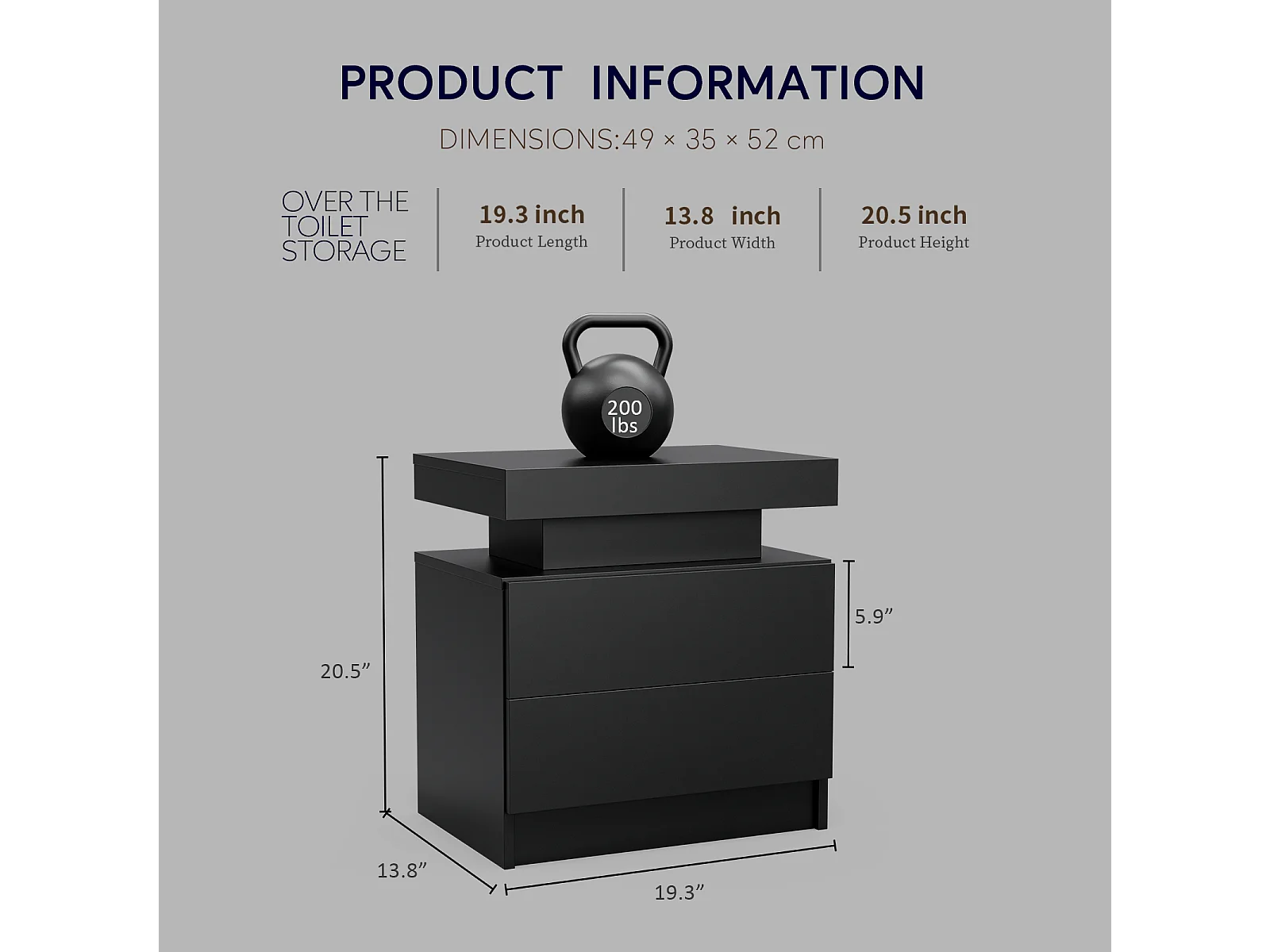 LED-nachtkastje met 2 lades, acryl blad, multi-color RGB-licht, MDF, zwart (50x53x36cm)