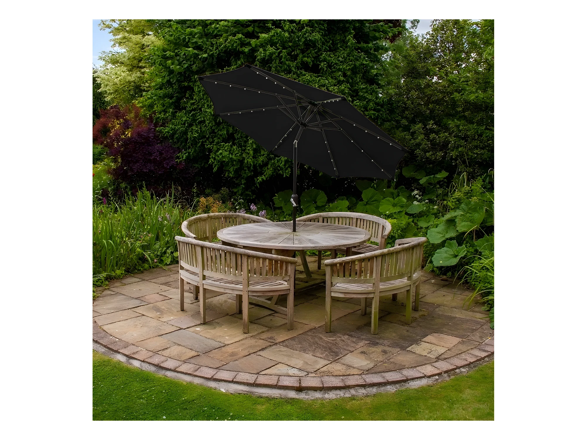 Rices zonnescherm parasol met tandwiel, LED licht, kantelt ø3 M zwart/zwart.
