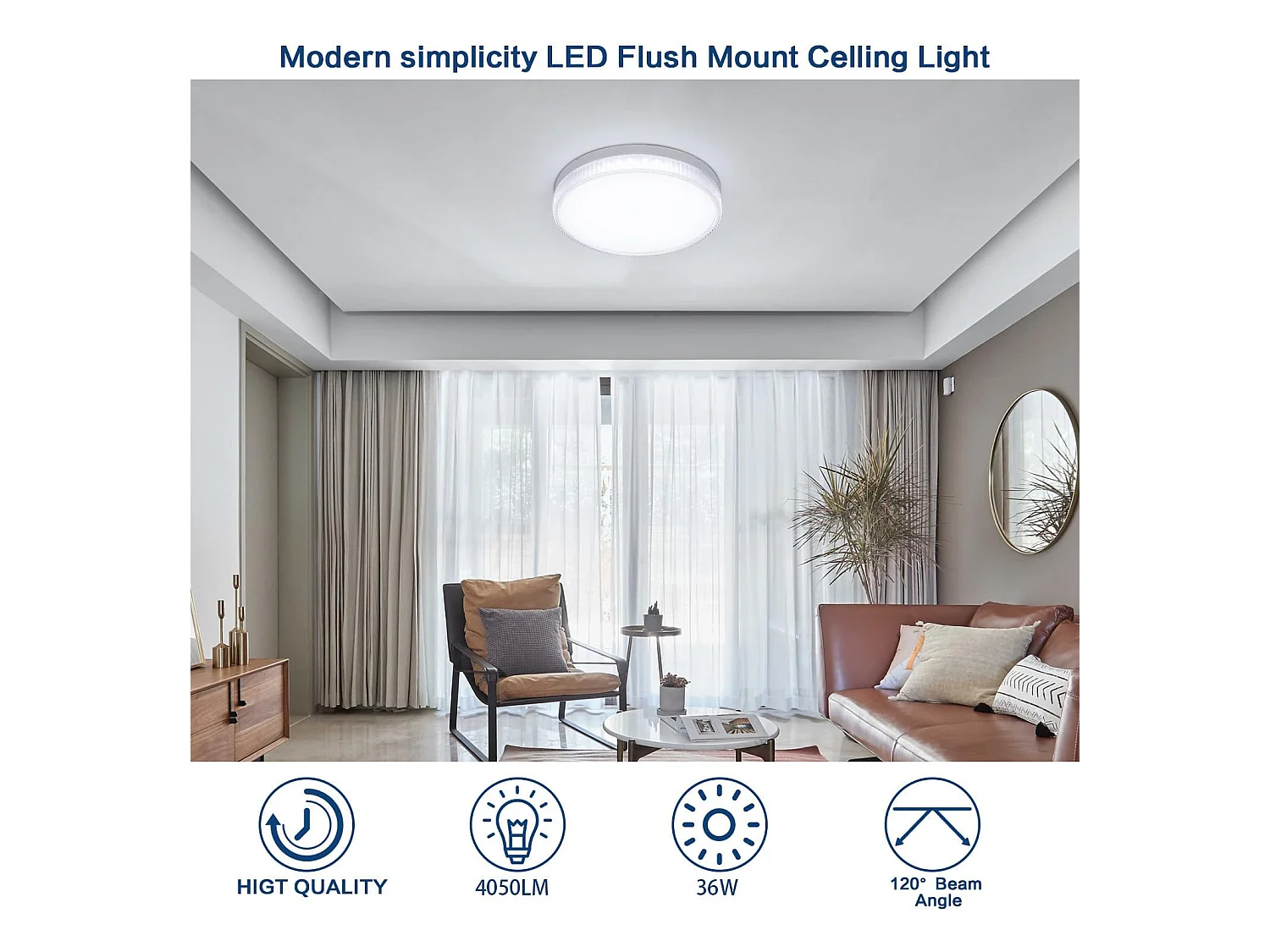 LED -plafondlicht 6500K 36W Ronde 4050lm Modern dunne, wit, 23*23*4cm, koud wit licht