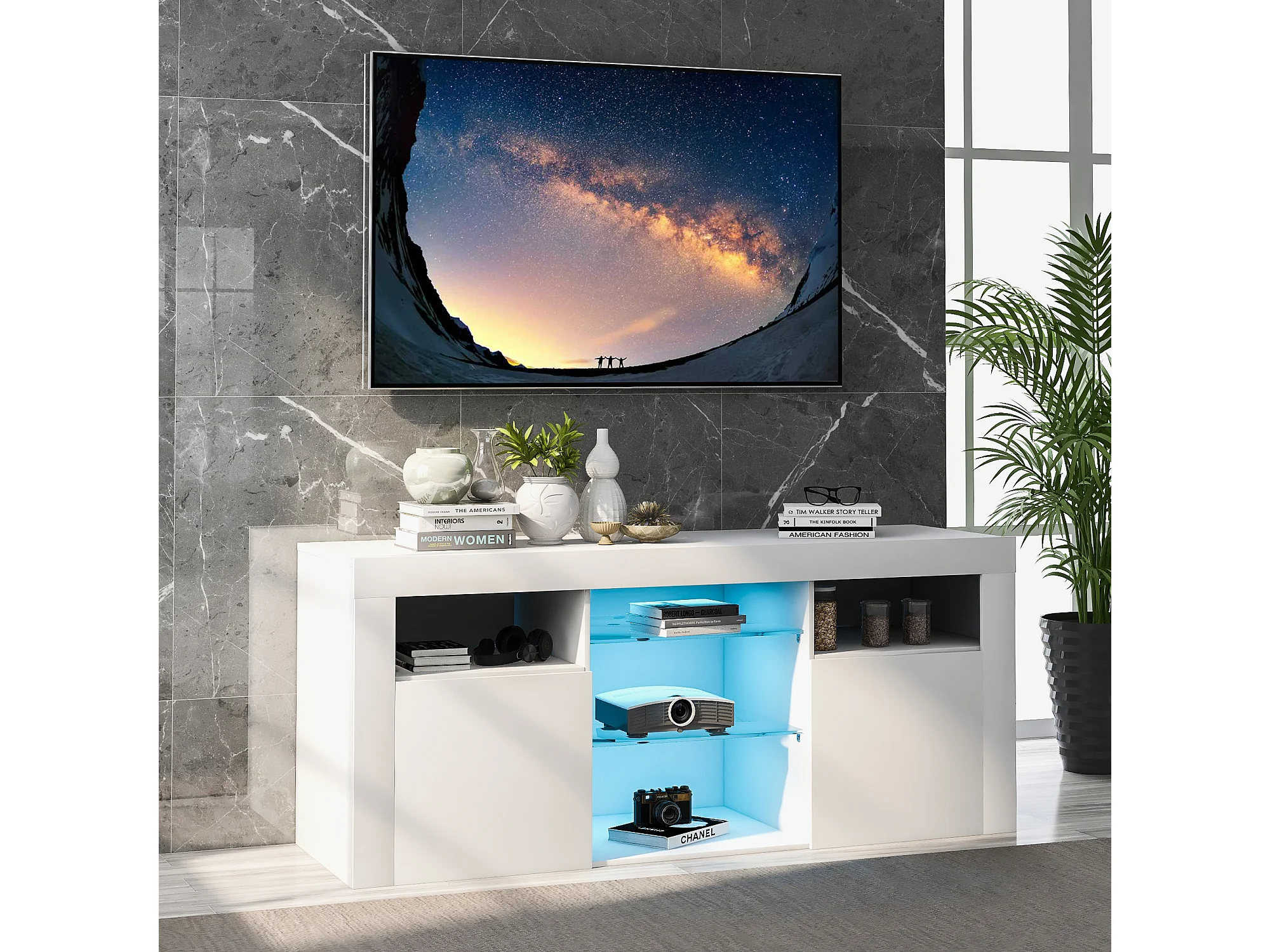 LED tv-meubel met verlichting, 2 kasten met deuren, wit