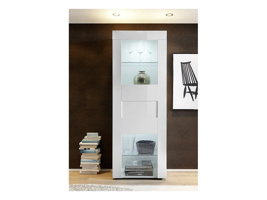 LED-vitrine 1 deur glanzend wit gelakt hout Lubi