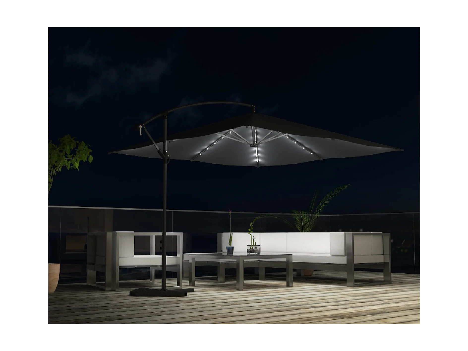 LED zweefparasol vierkant 3x3m grijs SOLENZARA BULLE
