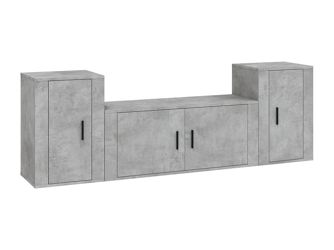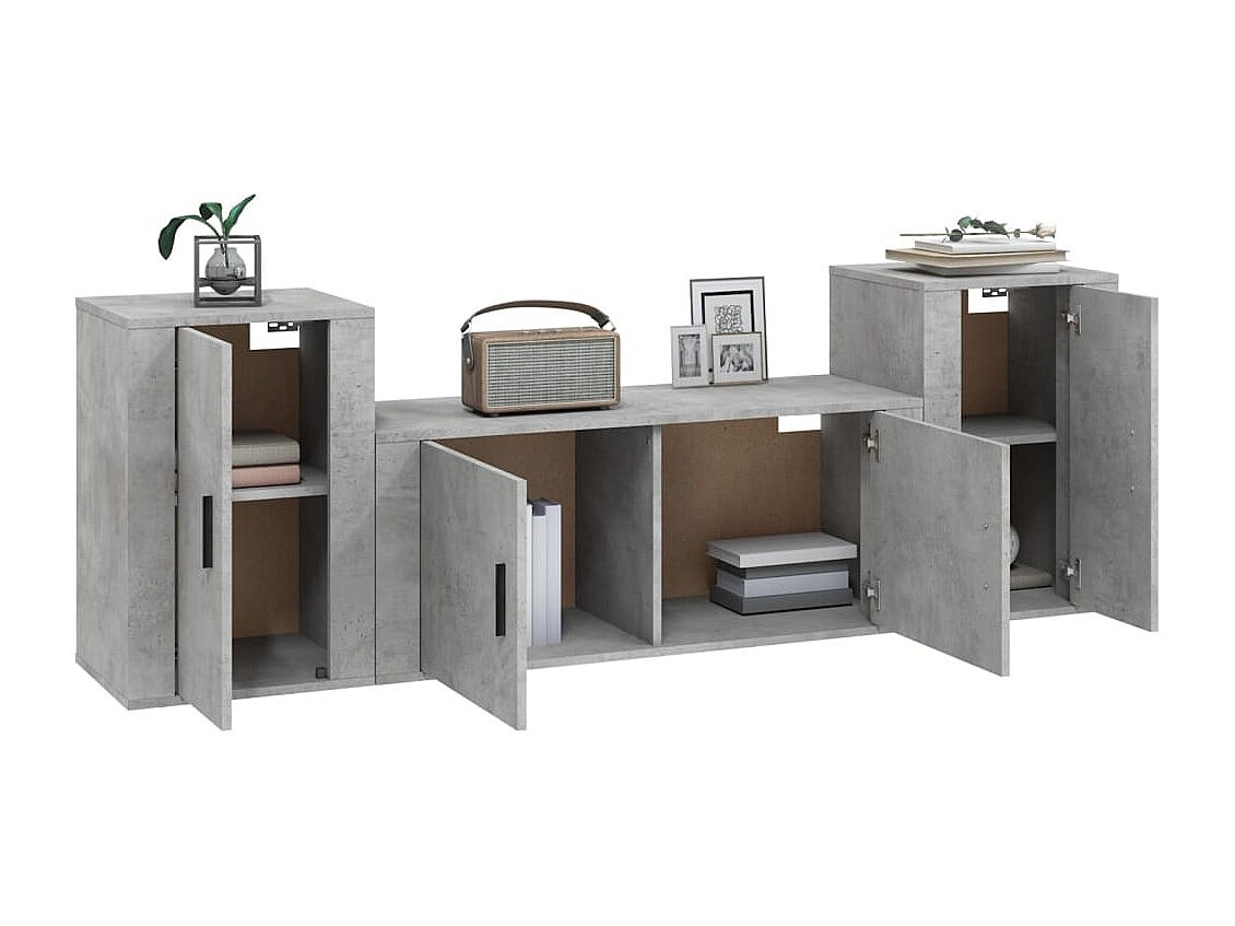 Leo 3-delige Tv-meubelset bewerkt hout betongrijs