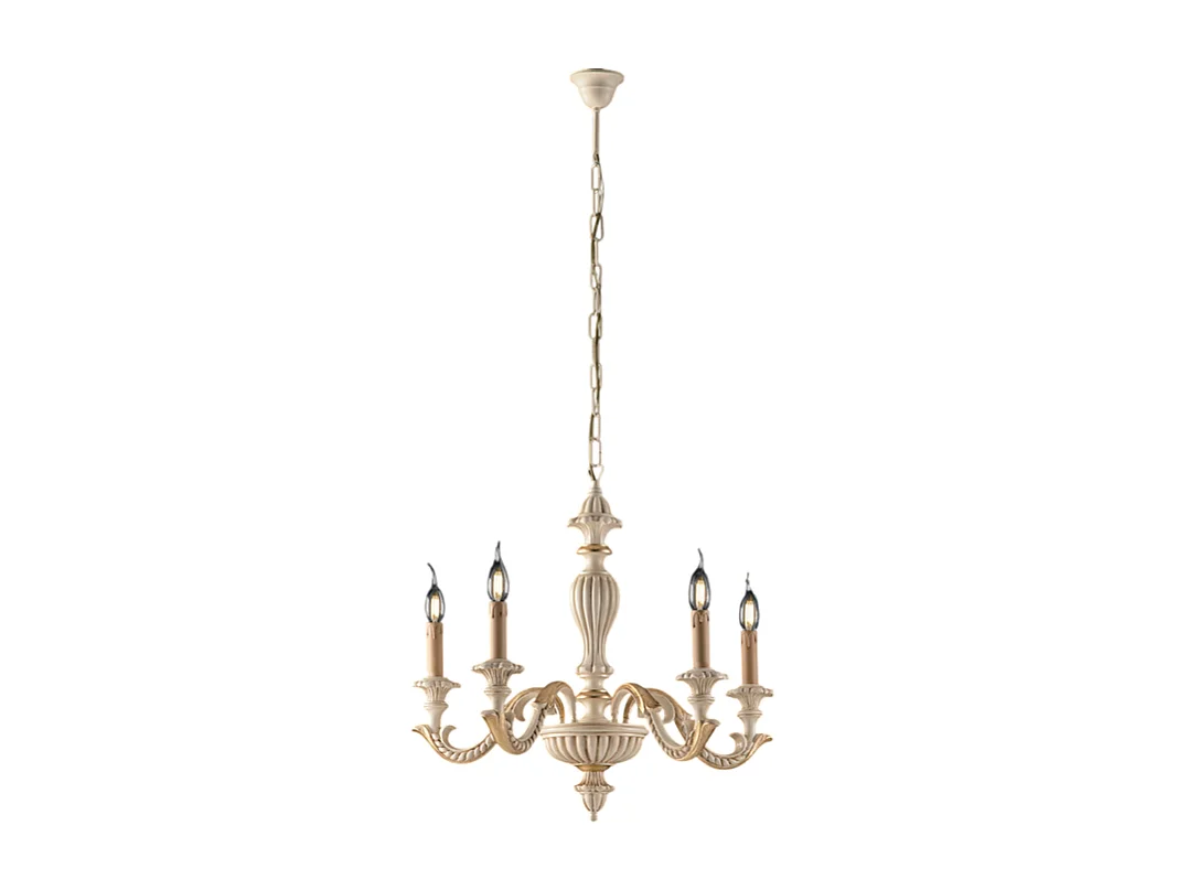 Leonardo - Kroonluchter in ivoorhout en bladgoud 5 lichts 117 - Ø53 - BL180-5-AV