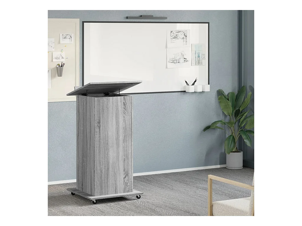 Lessenaar met wielen en lade 55x55x107 cm hout grijs sonoma BE589503