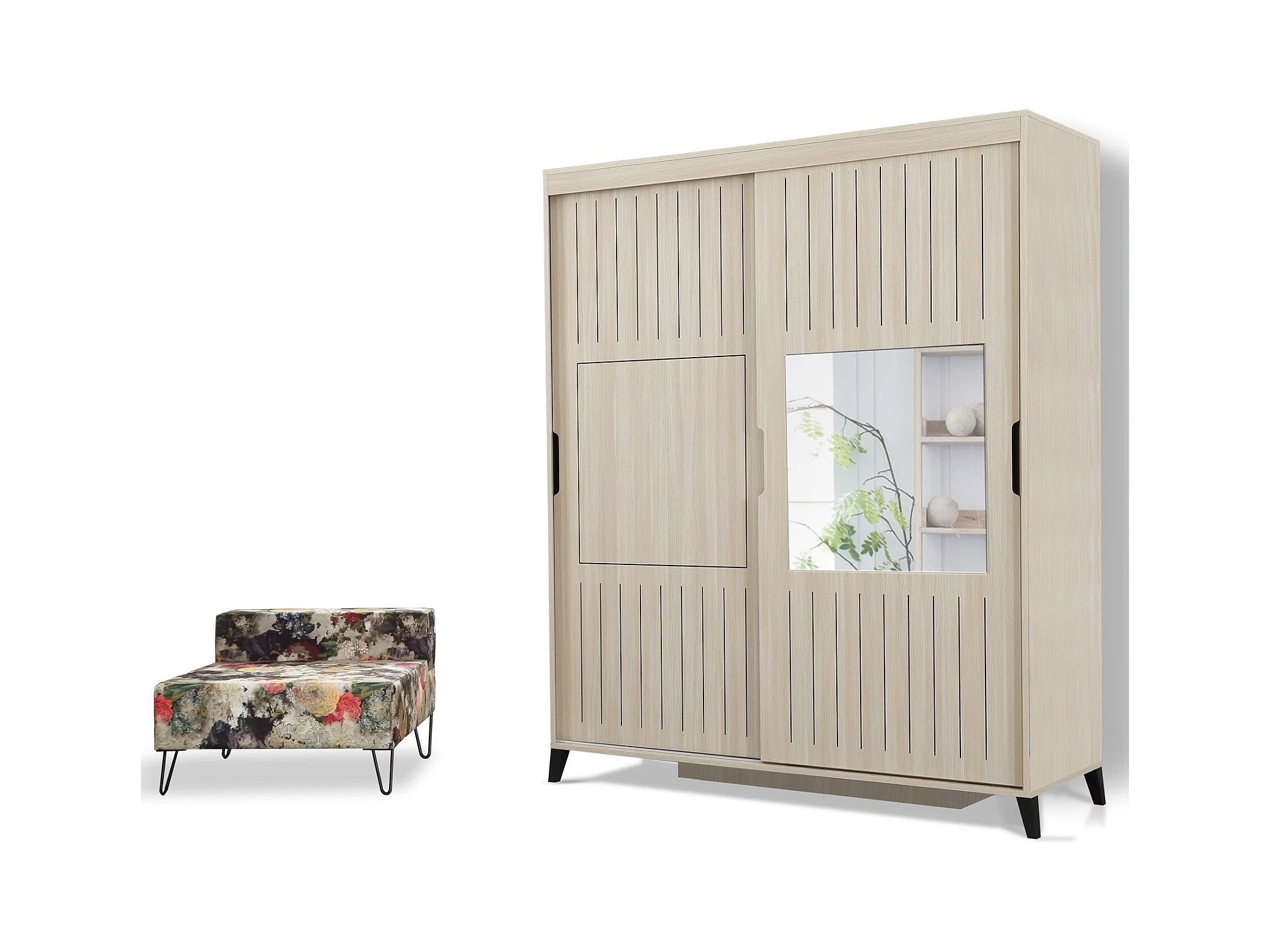 Licht eiken kledingkast voor volwassenen 2 schuifdeuren met spiegel Marka - 8 maten-Breedte 180cm