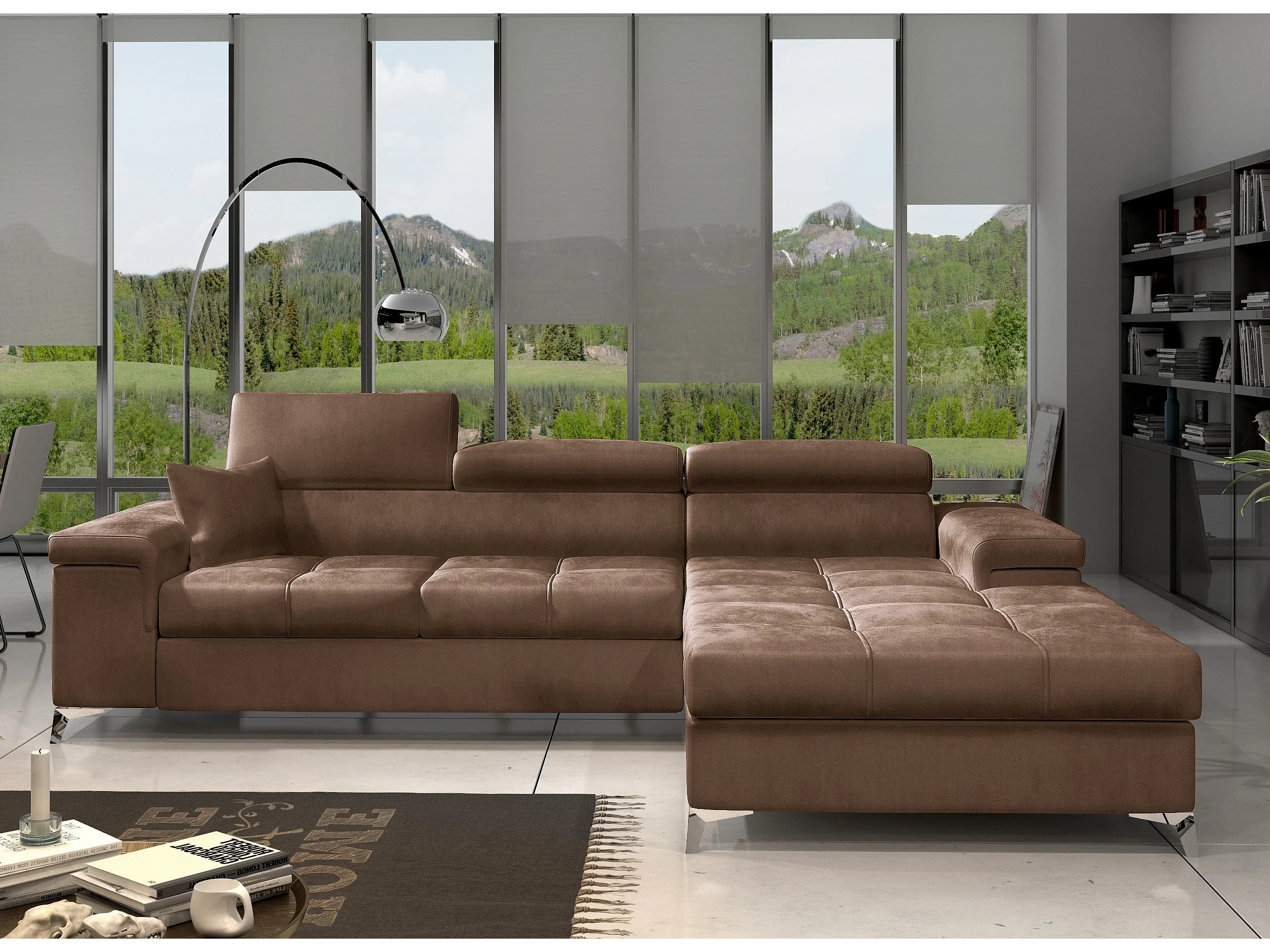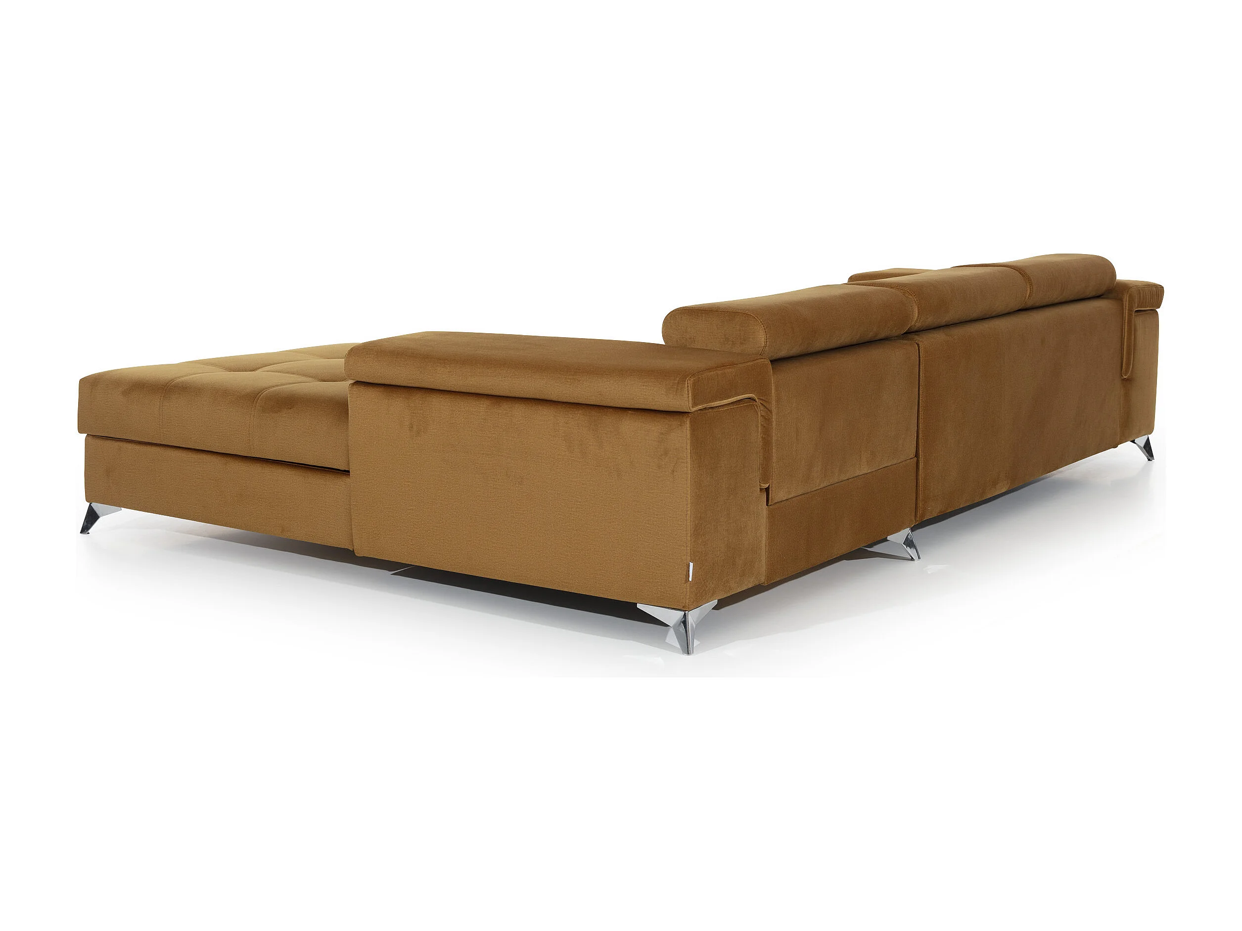 Fluwelen converteerbare hoekbank met verstelbare hoofdsteunen Rikaro 280 cm-Kleur Lichtbruin-juiste hoek