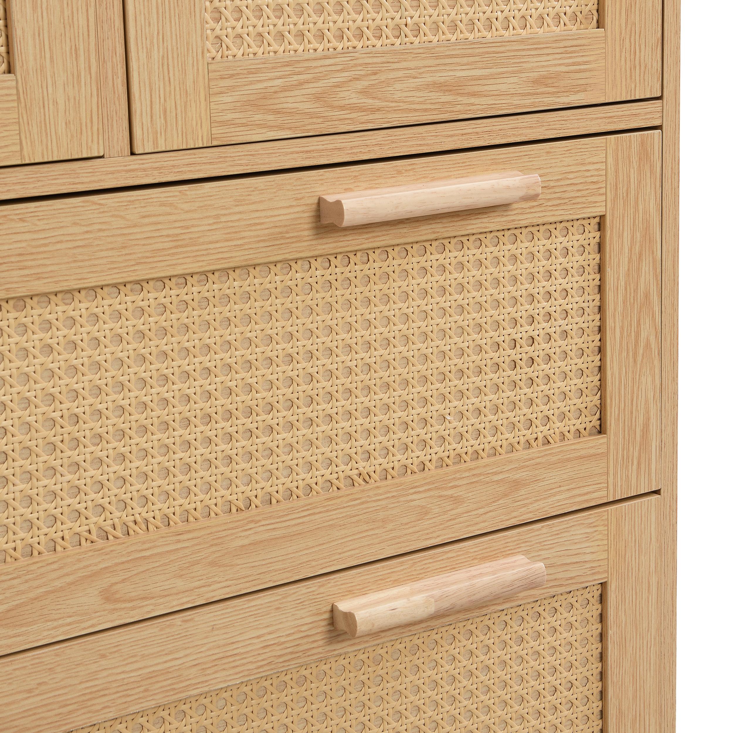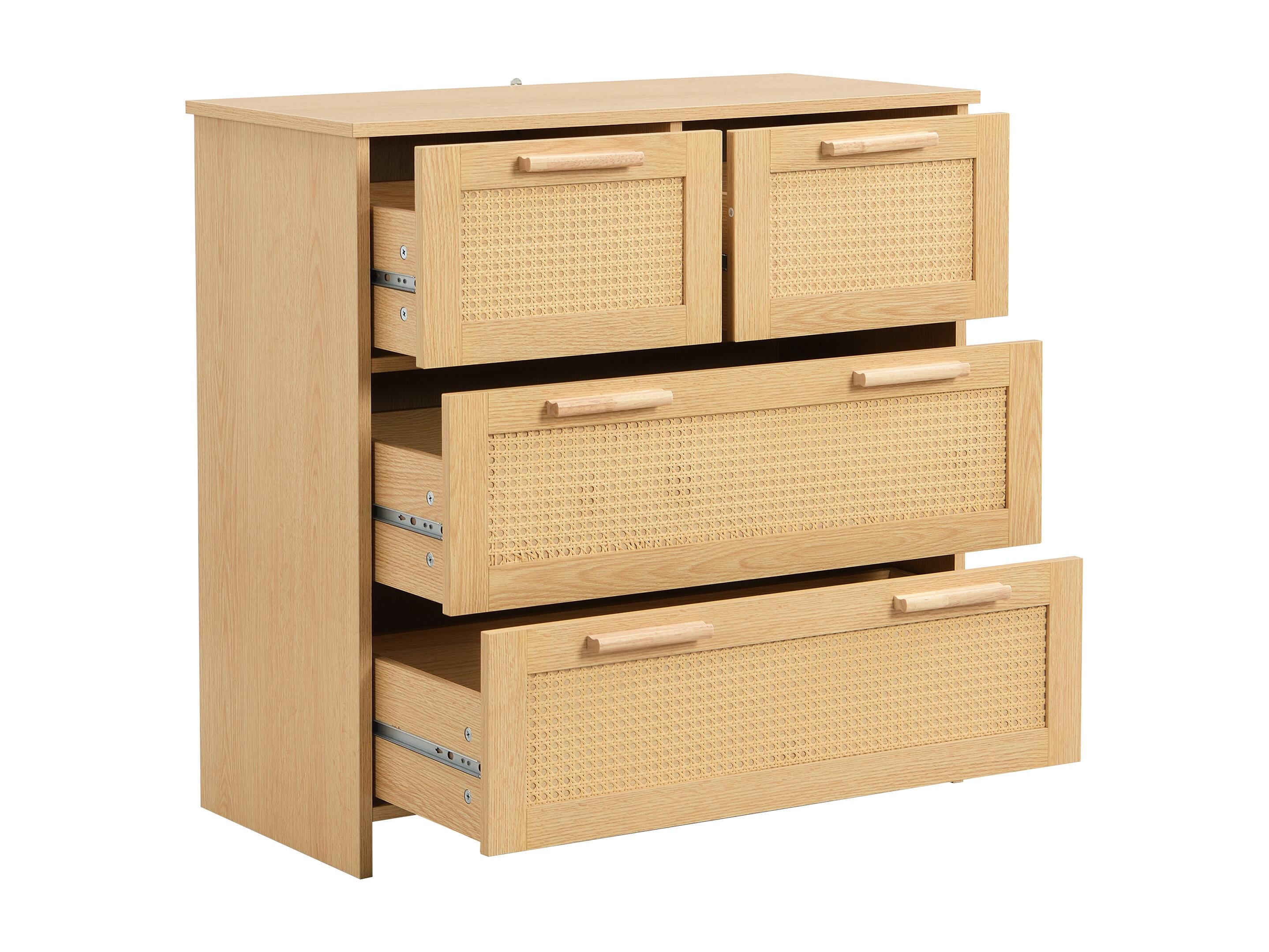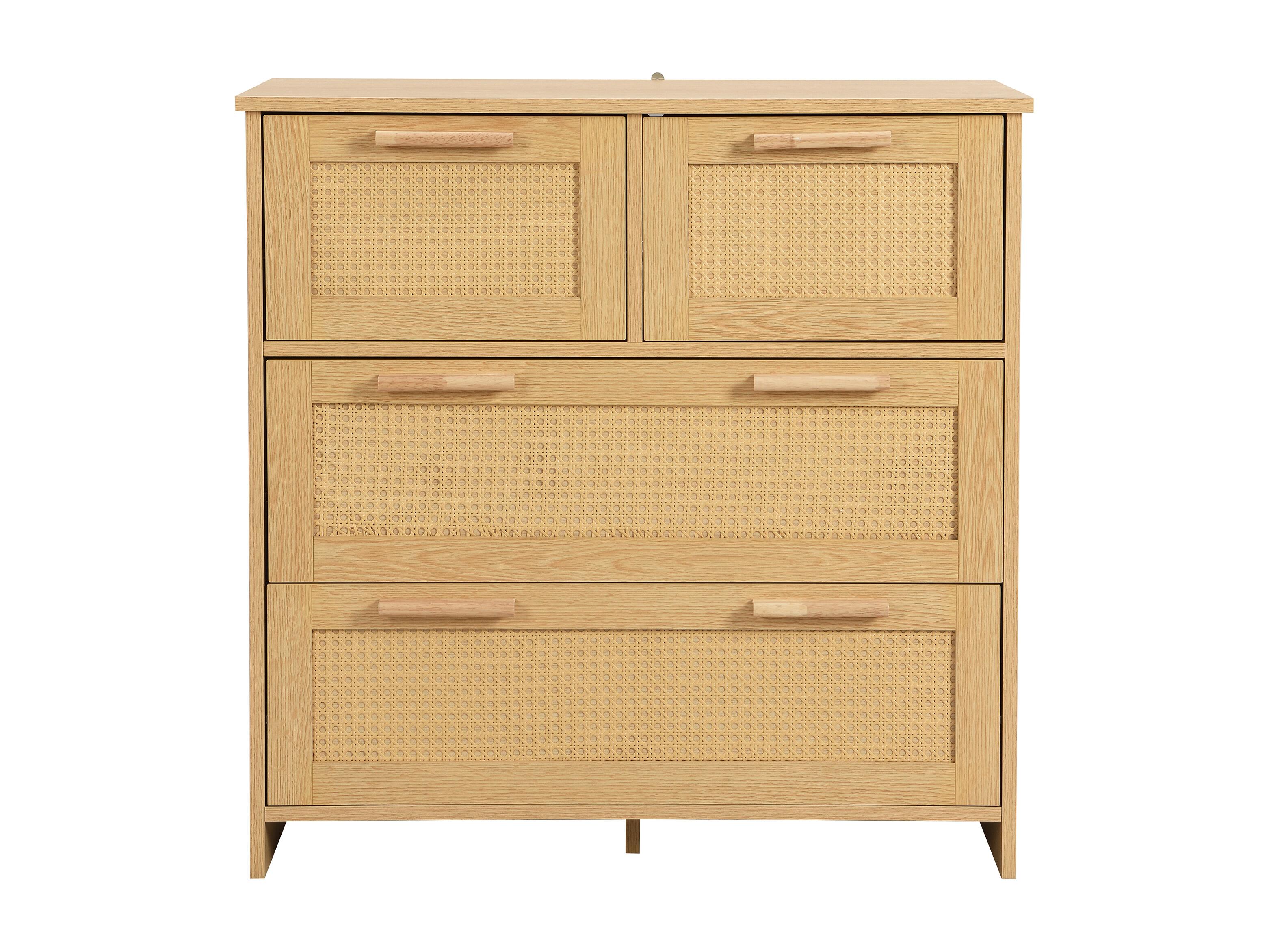 Lichte natuurlijke ladekast met 4 rotan lades en houten handgrepen, 80x38x80cm