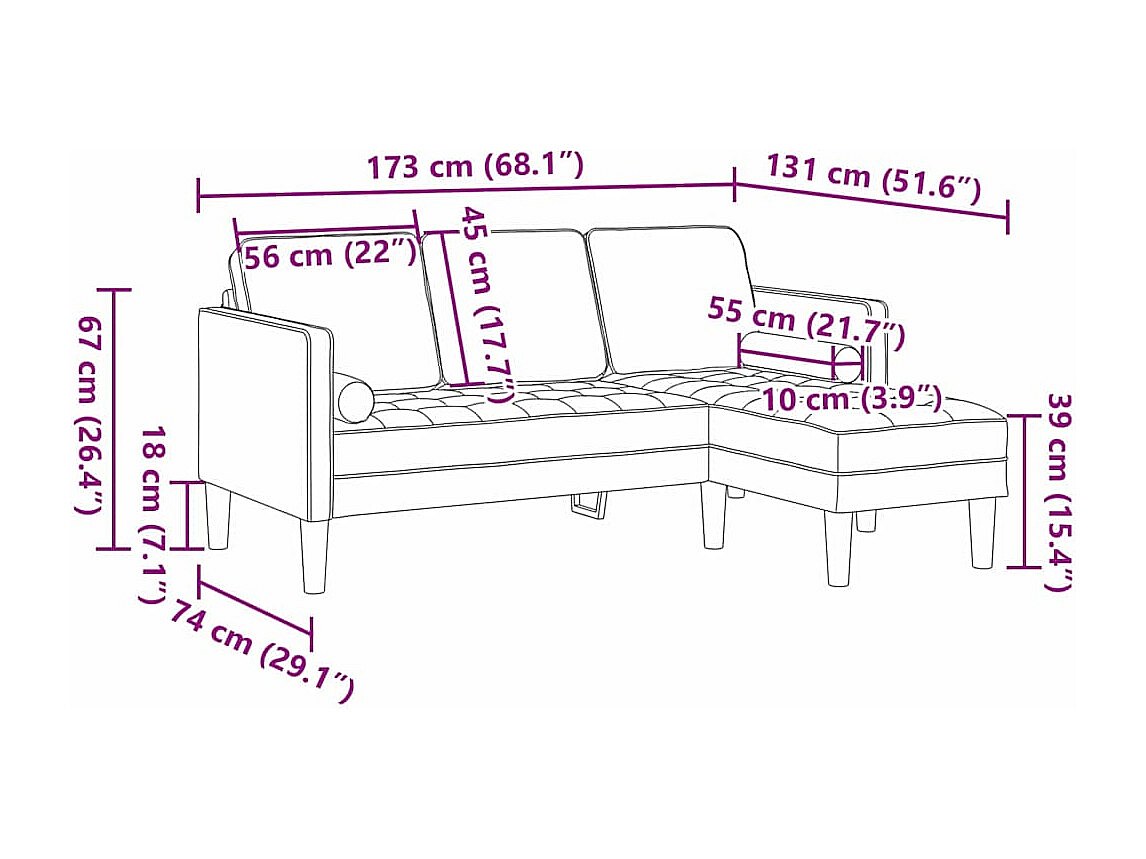 Lichtgrijze bankstel 173 x 131 x 67 cm fluweel