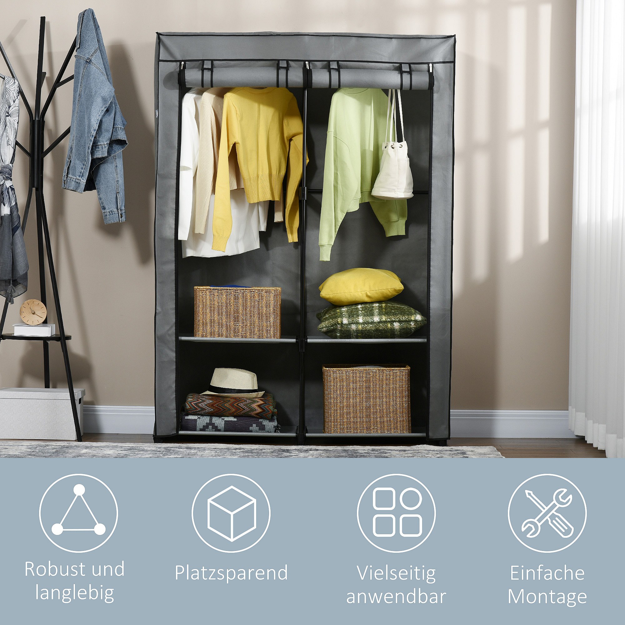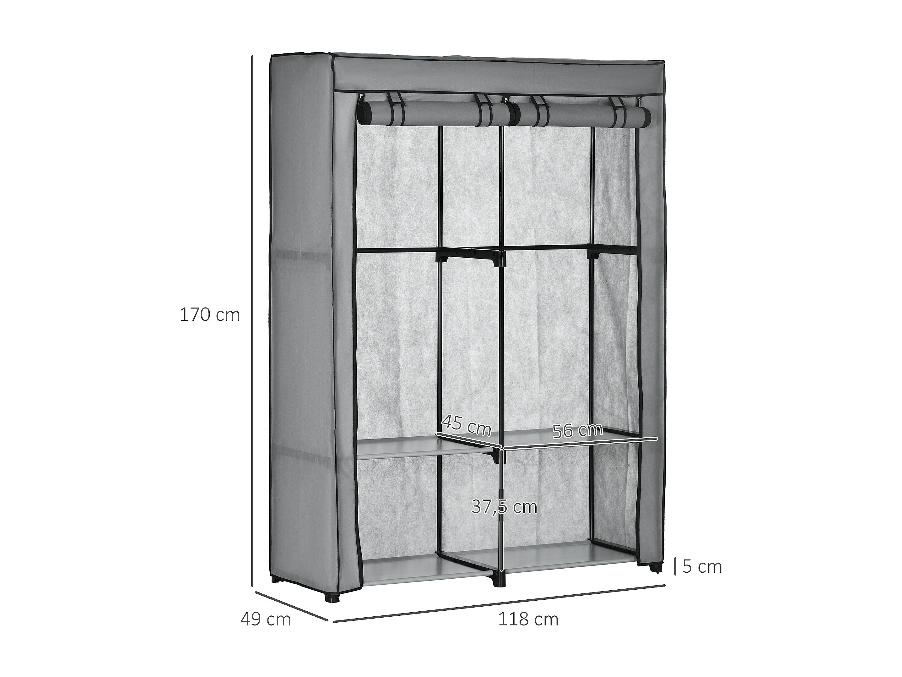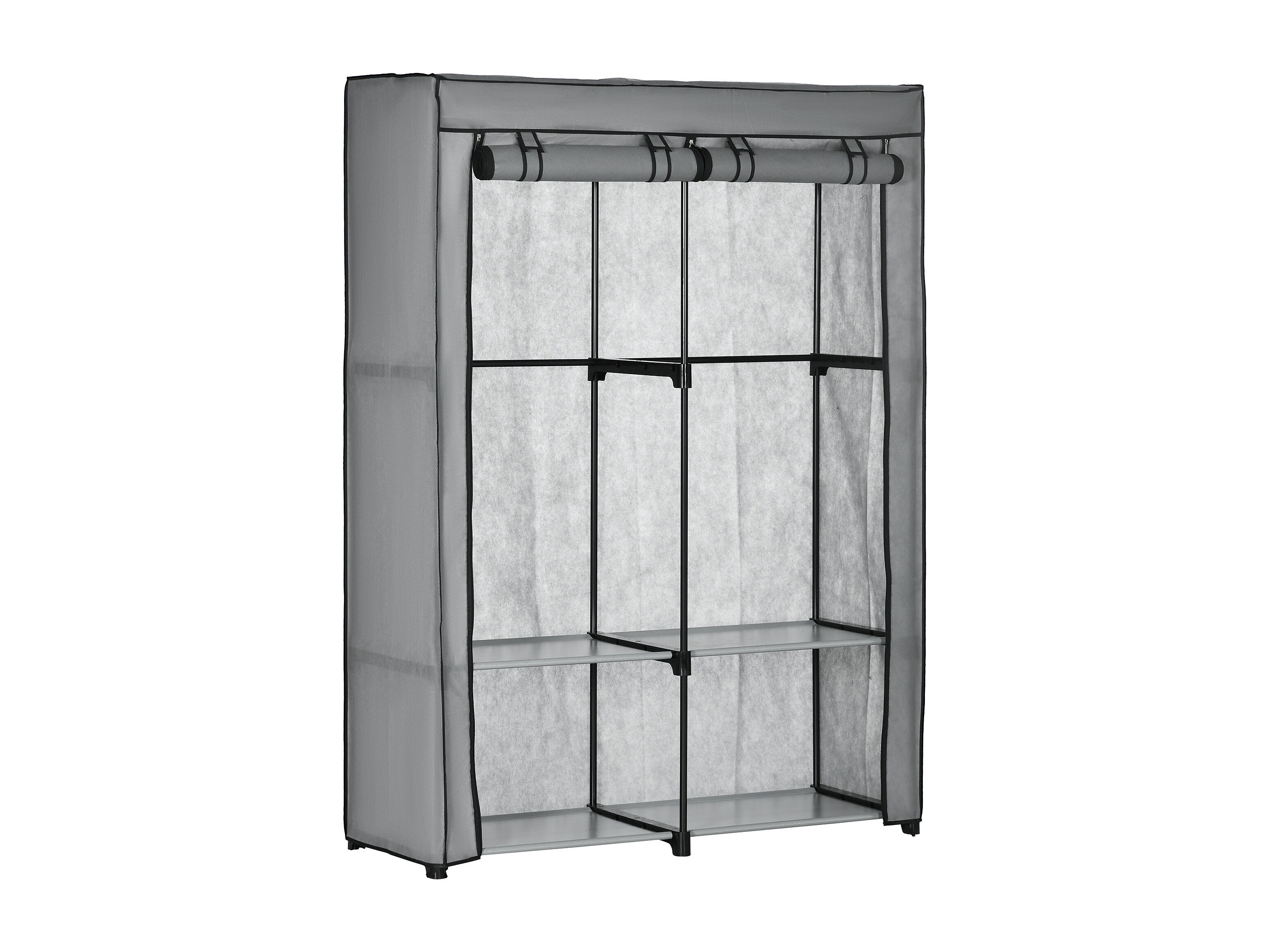 Lichtgrijze stoffen opvouwbare kledingkast met kledingroede en 4 compartimenten - Ritssluiting, praktisch voor het organiseren van de slaapkamer