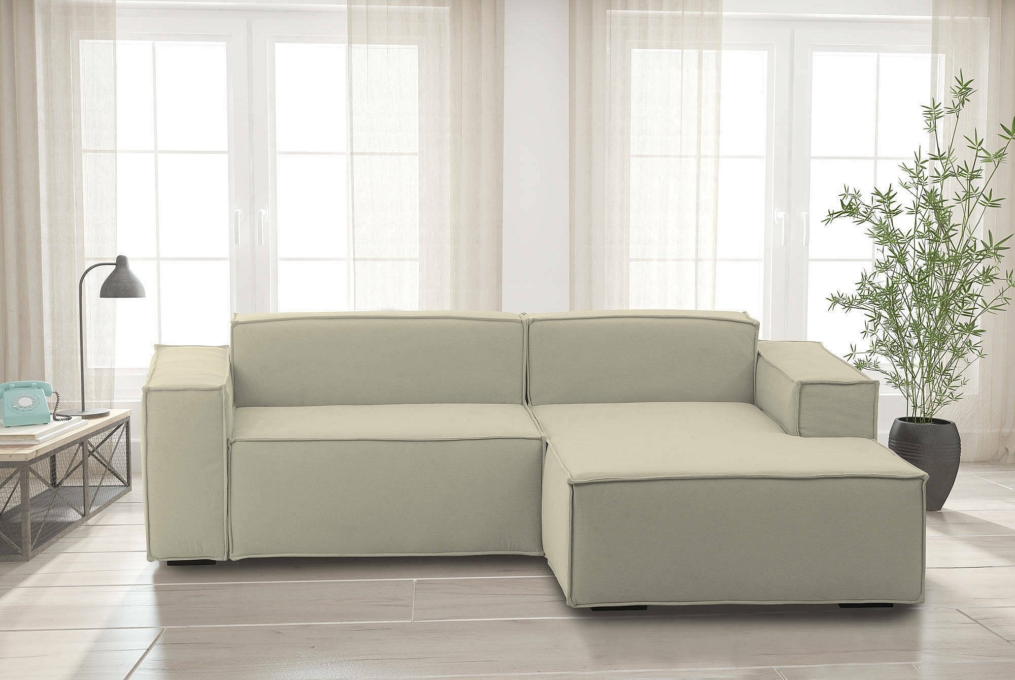 Dkivil vaste bank, 2-zits modulaire bank met linkerschiereiland, 100% Made in Italy, Moderne stoffen bank, 220x170h70 cm, Beige