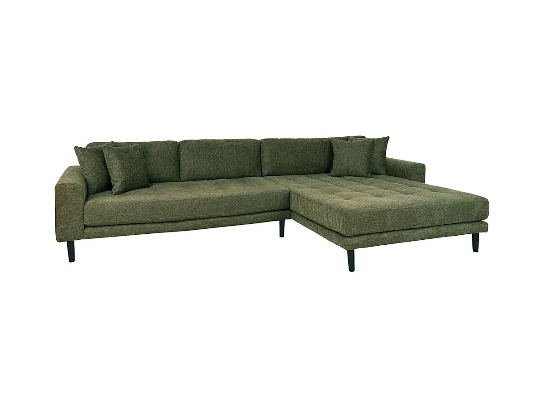 Lido bank bank met chaise longue rechts gericht 4 kussens groen.