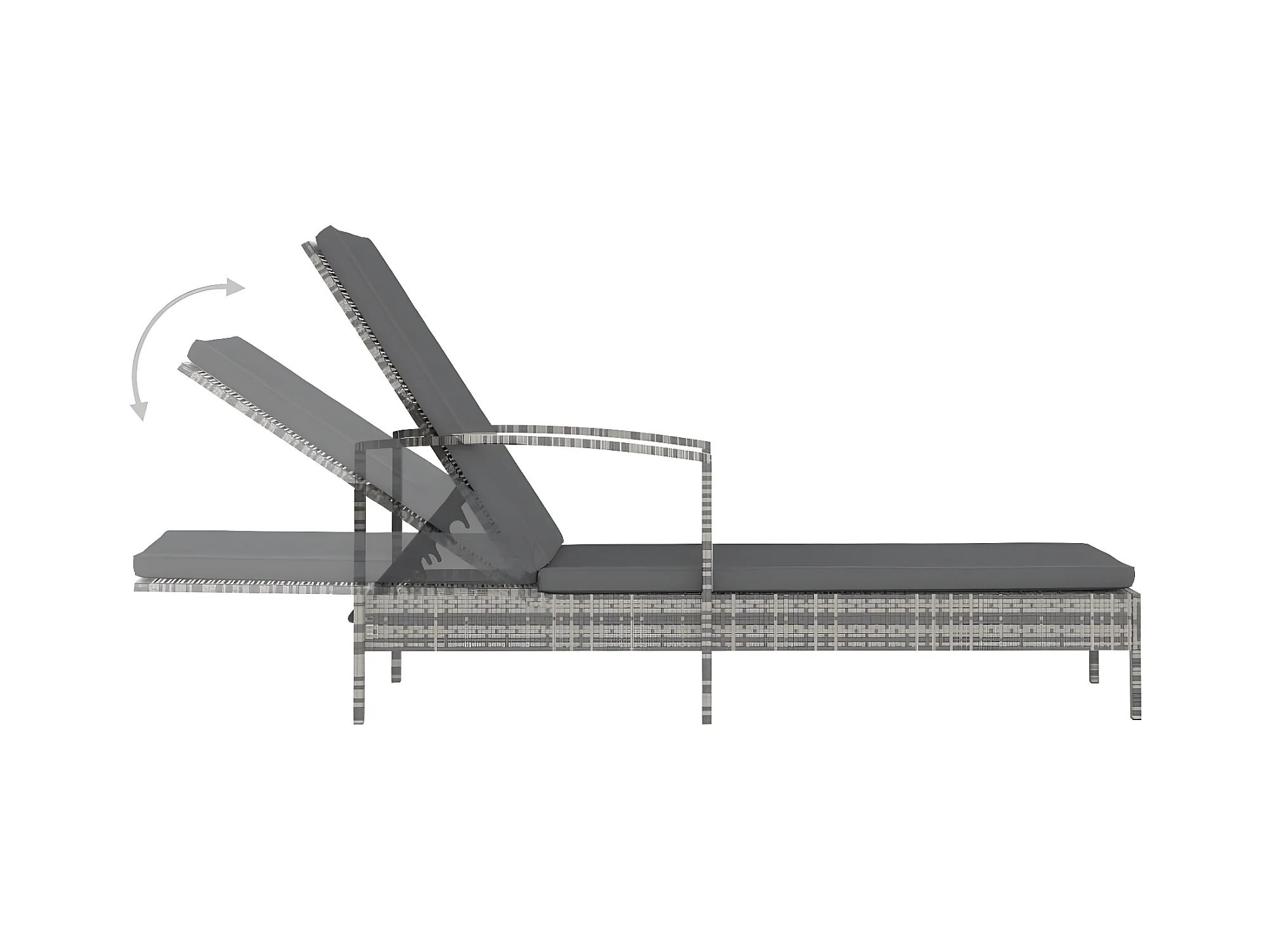 Ligbedden 2 st met voetensteun polyetheen rattan grijs NL106127