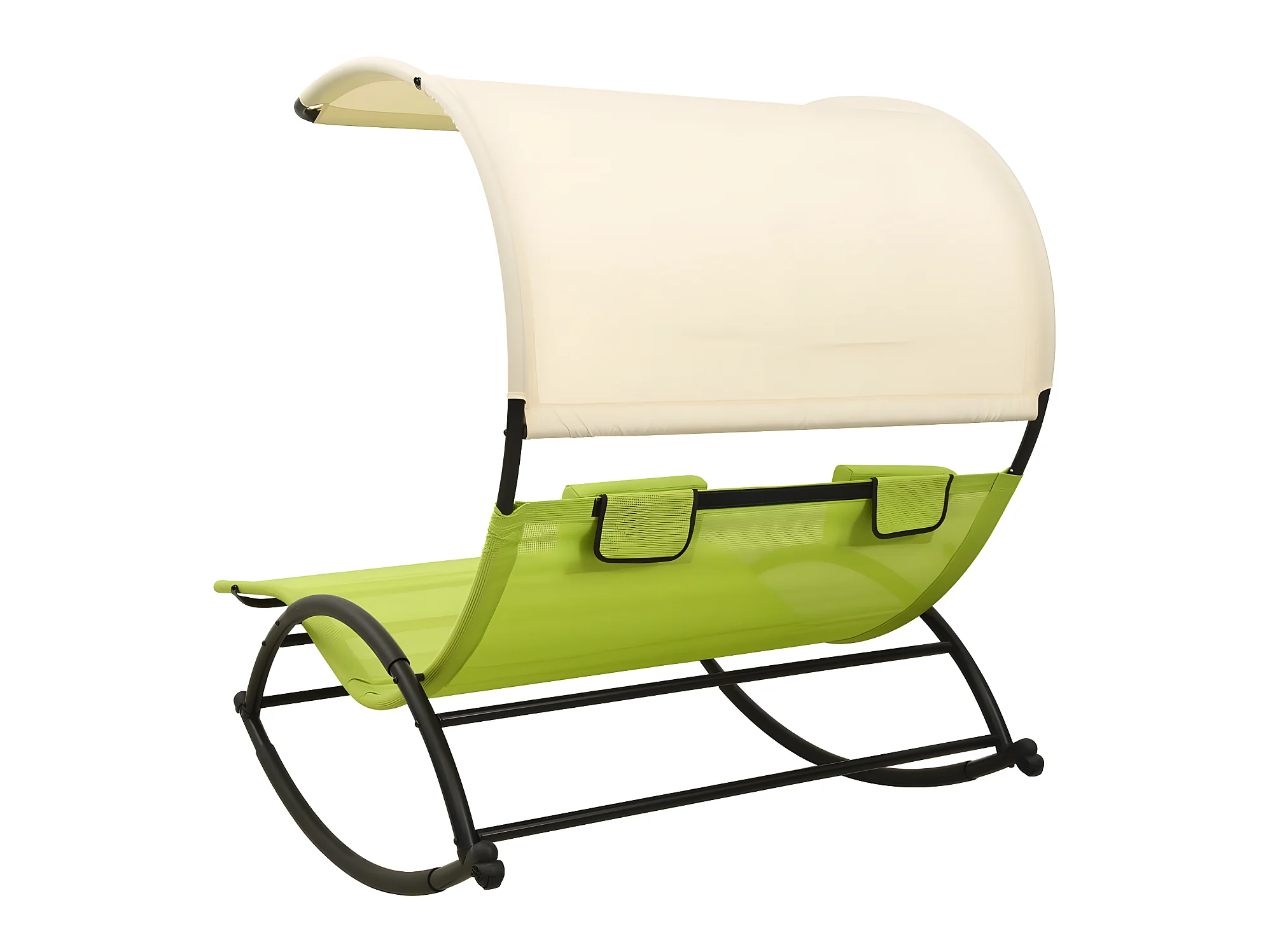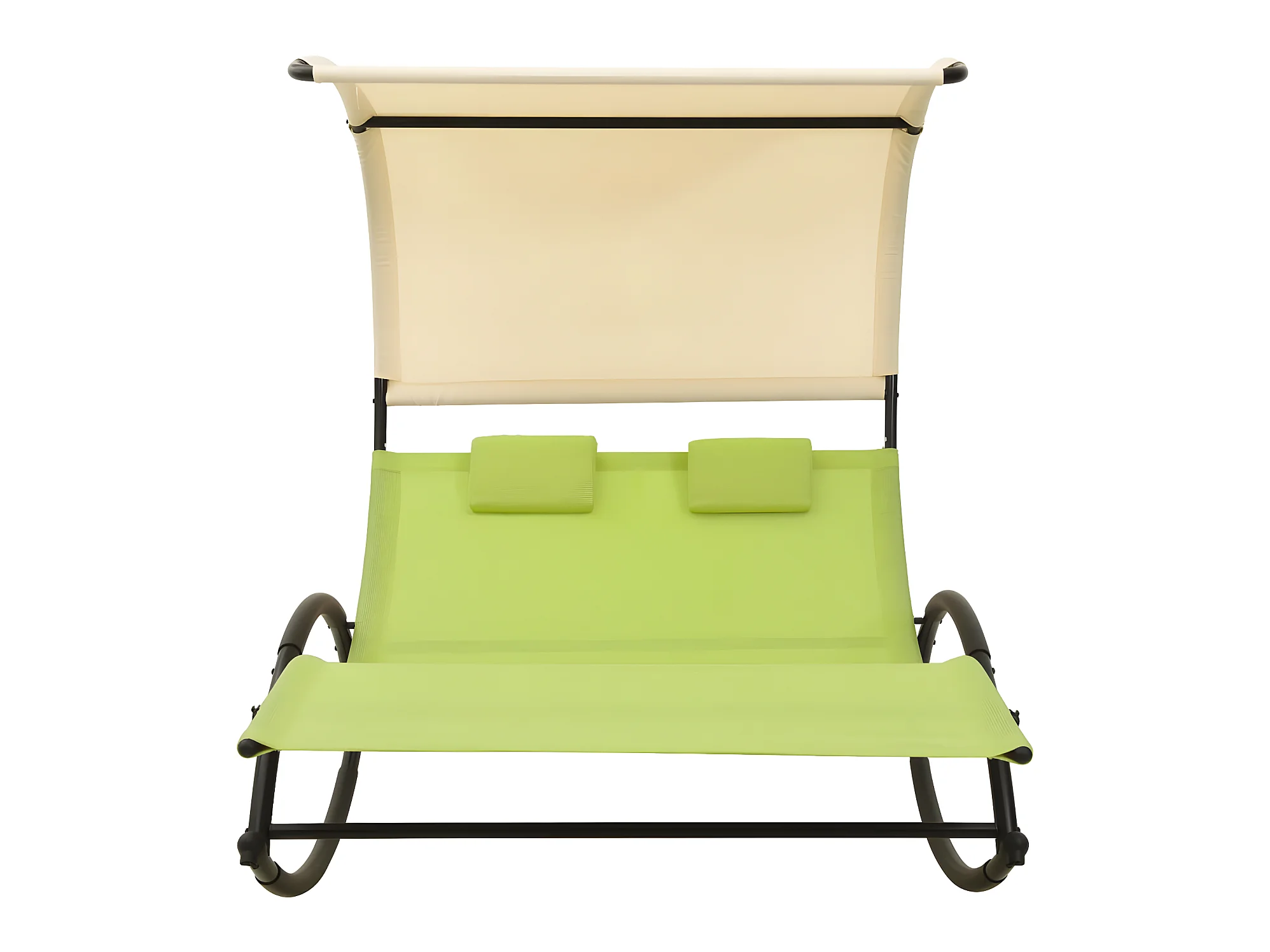 Ligbed tweepersoons met luifel textileen groen en crèmekleurig NL940644