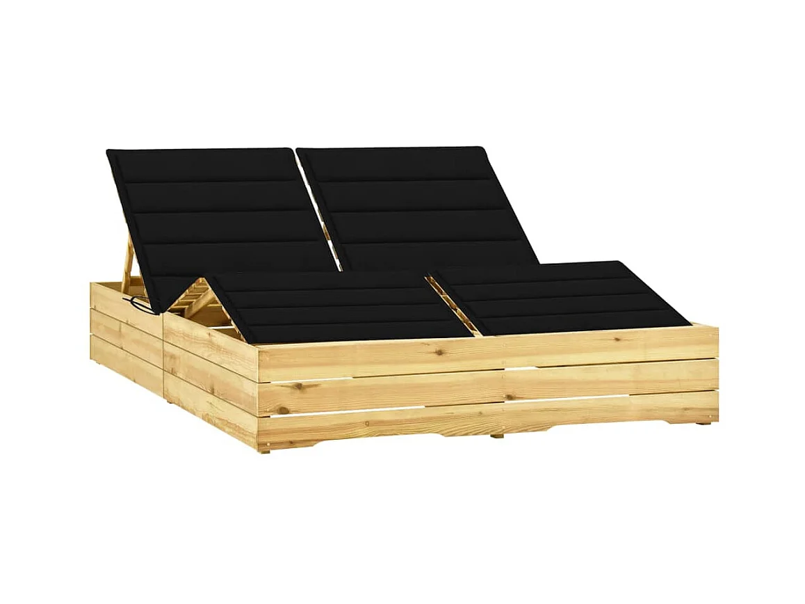 Ligbed tweepersoons met zwarte kussens geïmpregneerd grenenhout NL770735