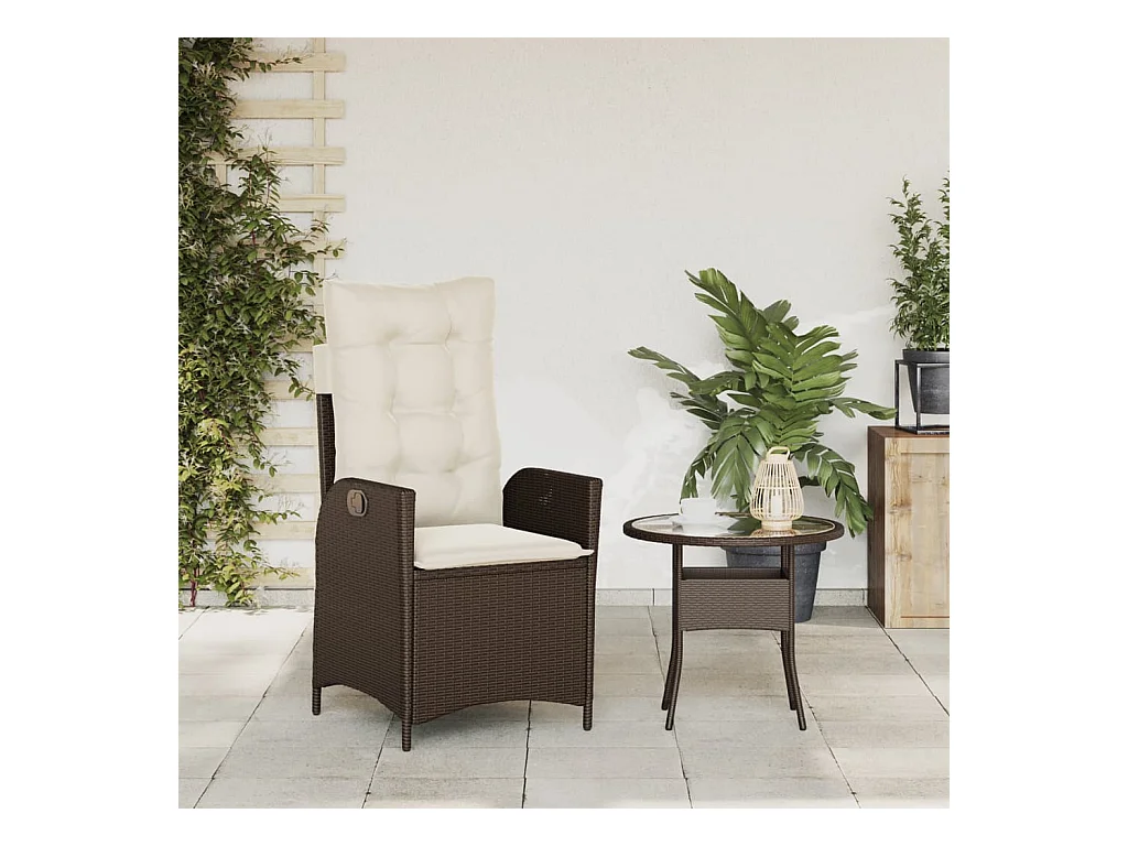 Liggende tuinstoel met bruine kunsthars rieten kussens