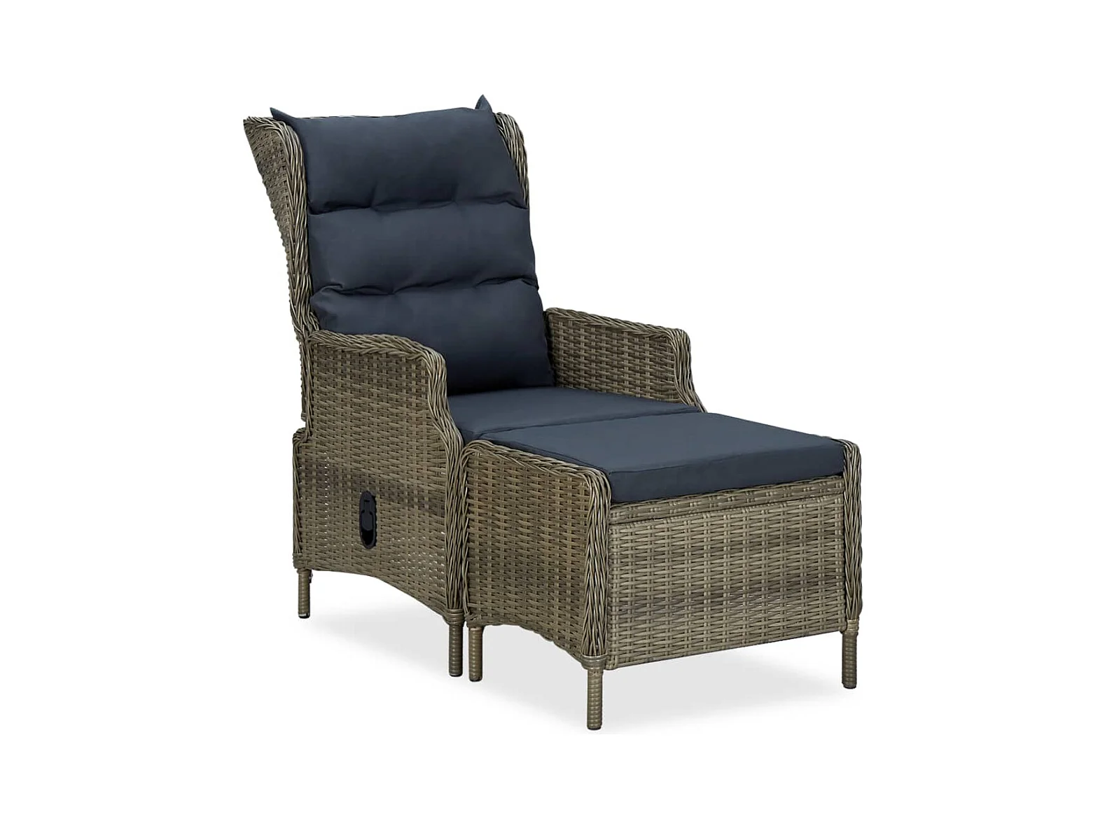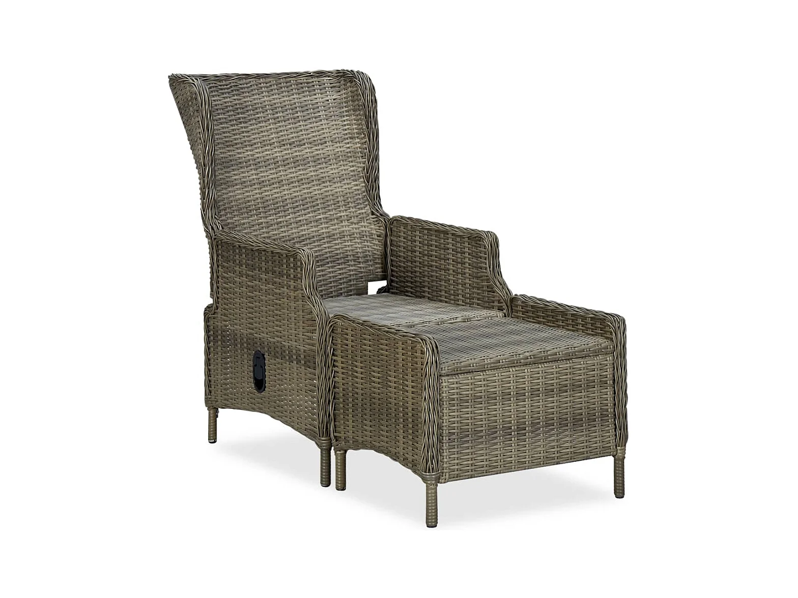 Liggende tuinstoel met kruk Bruin gevlochten hars
