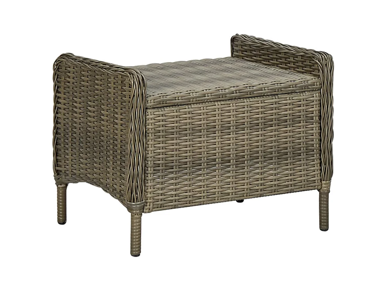 Liggende tuinstoel met voetenbankje van bruin riethars