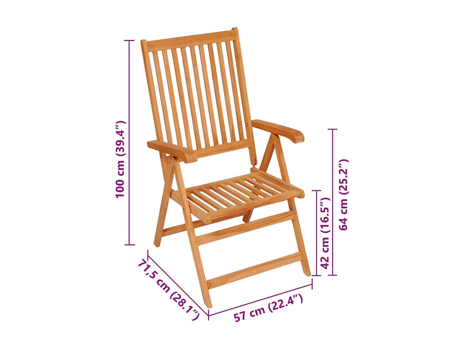 Liggende tuinstoelen en kussens set van 8 massief teakhout