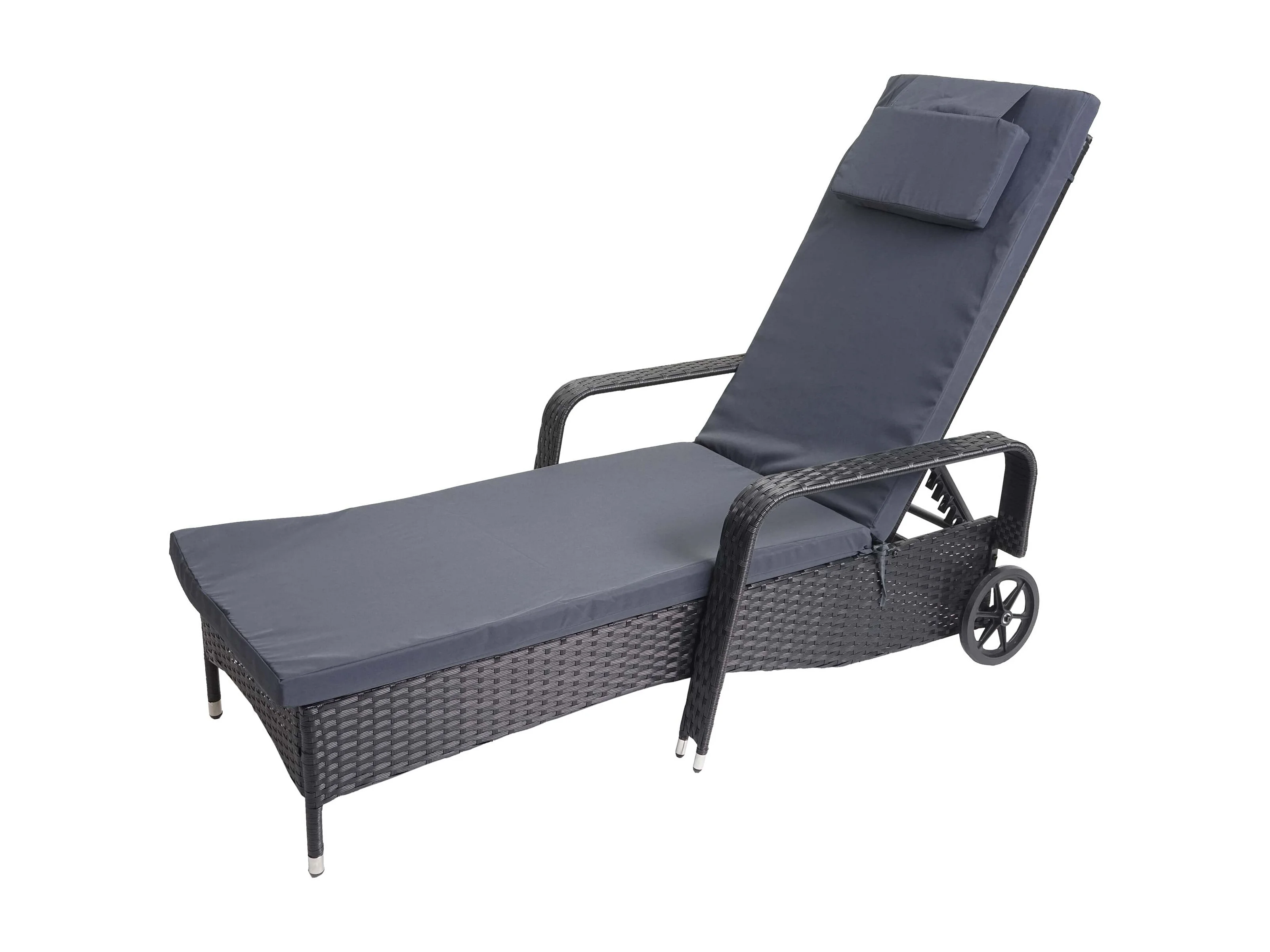 Polyrotan ligstoel Cesena, antraciet, kussen grijs