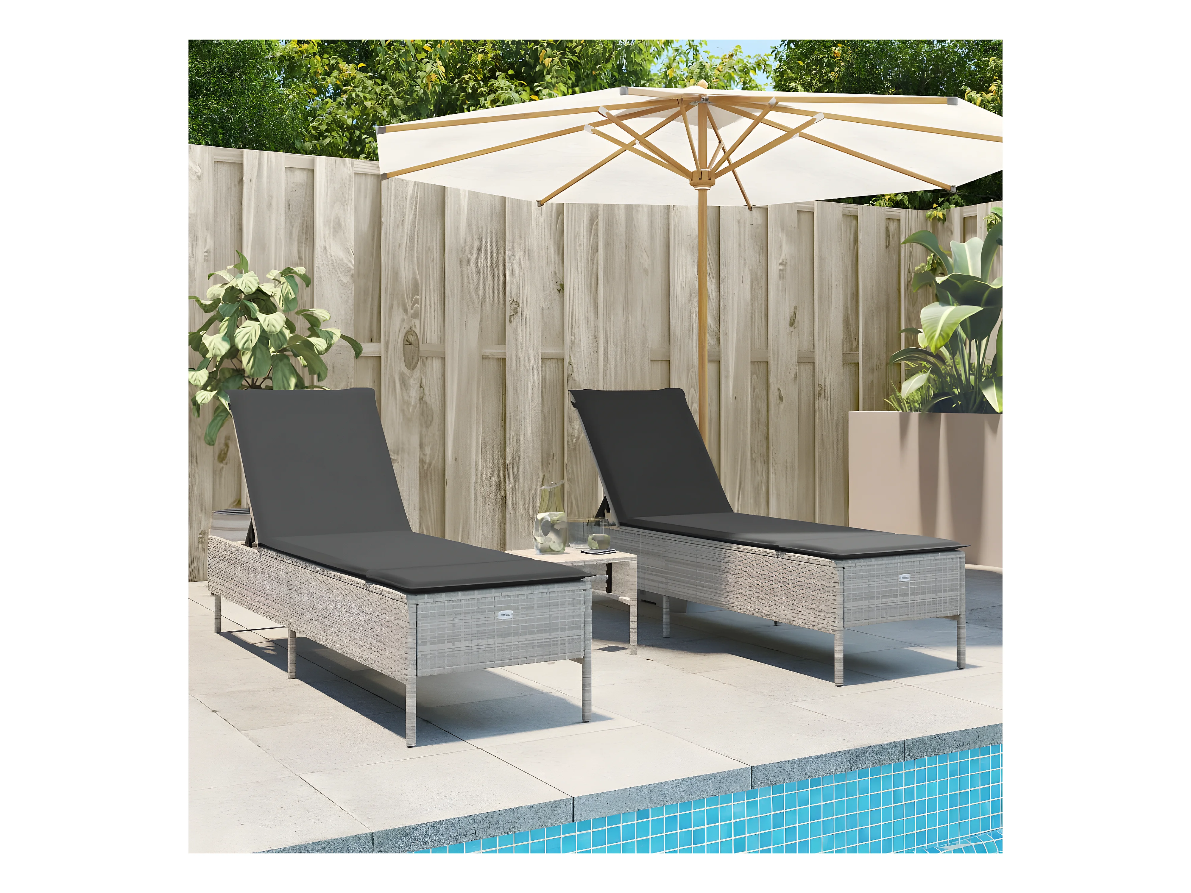 Ligbedden 2 st met tafel poly rattan grijs BE301030