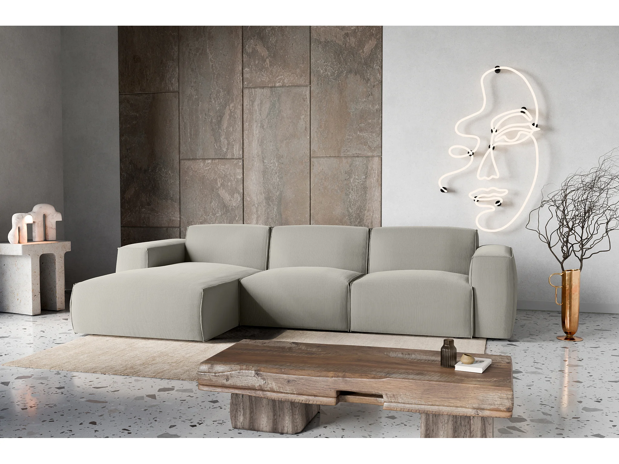 Linker hoekslaapbank Hudson met slaapfunctie en opbergbox in lichtgrijs Premium – van de fabrikant VINOTTI