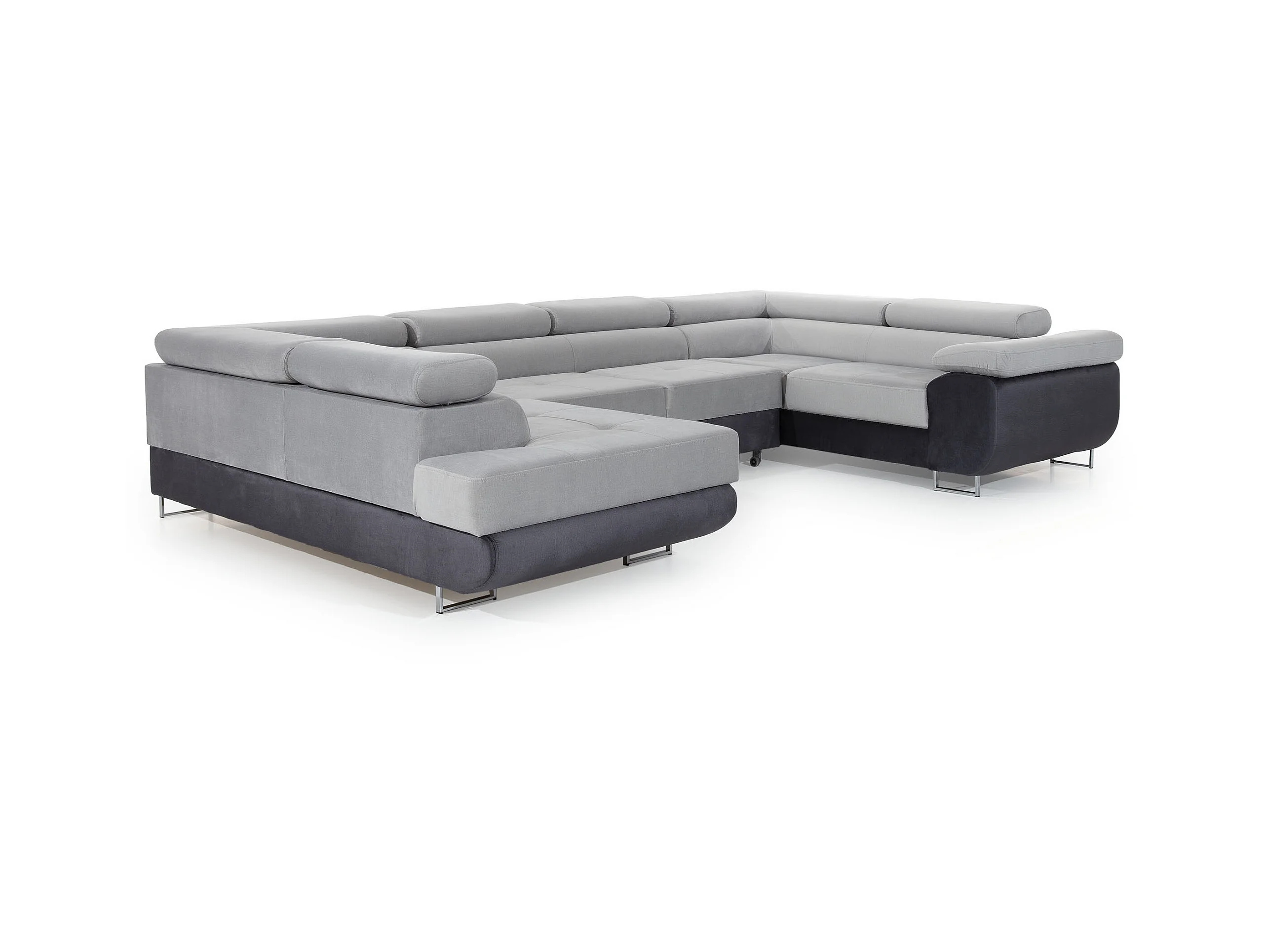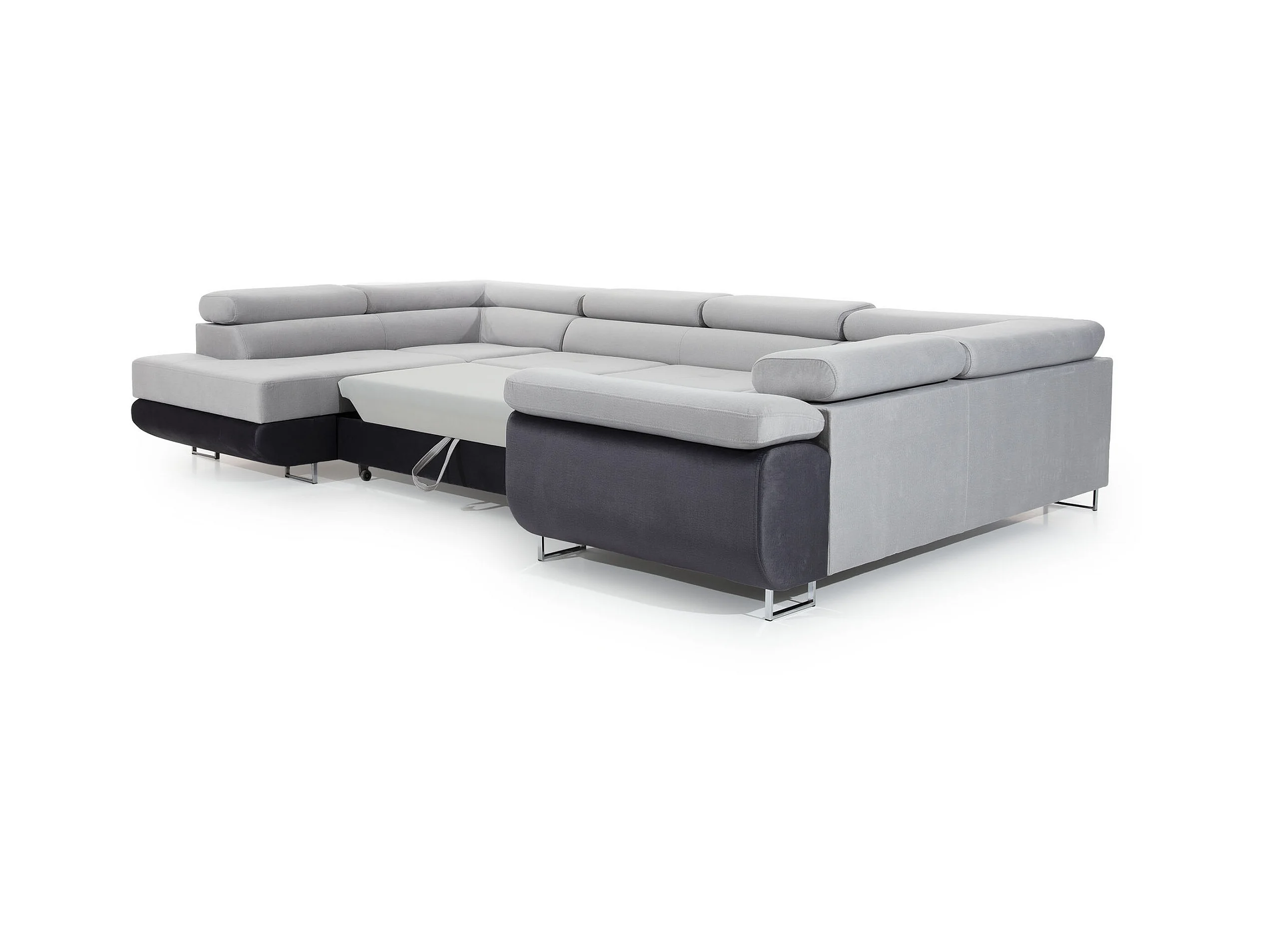 Linker U slaapbank in grijze stof en imitatie met Tovy opbergdoos 340 cm