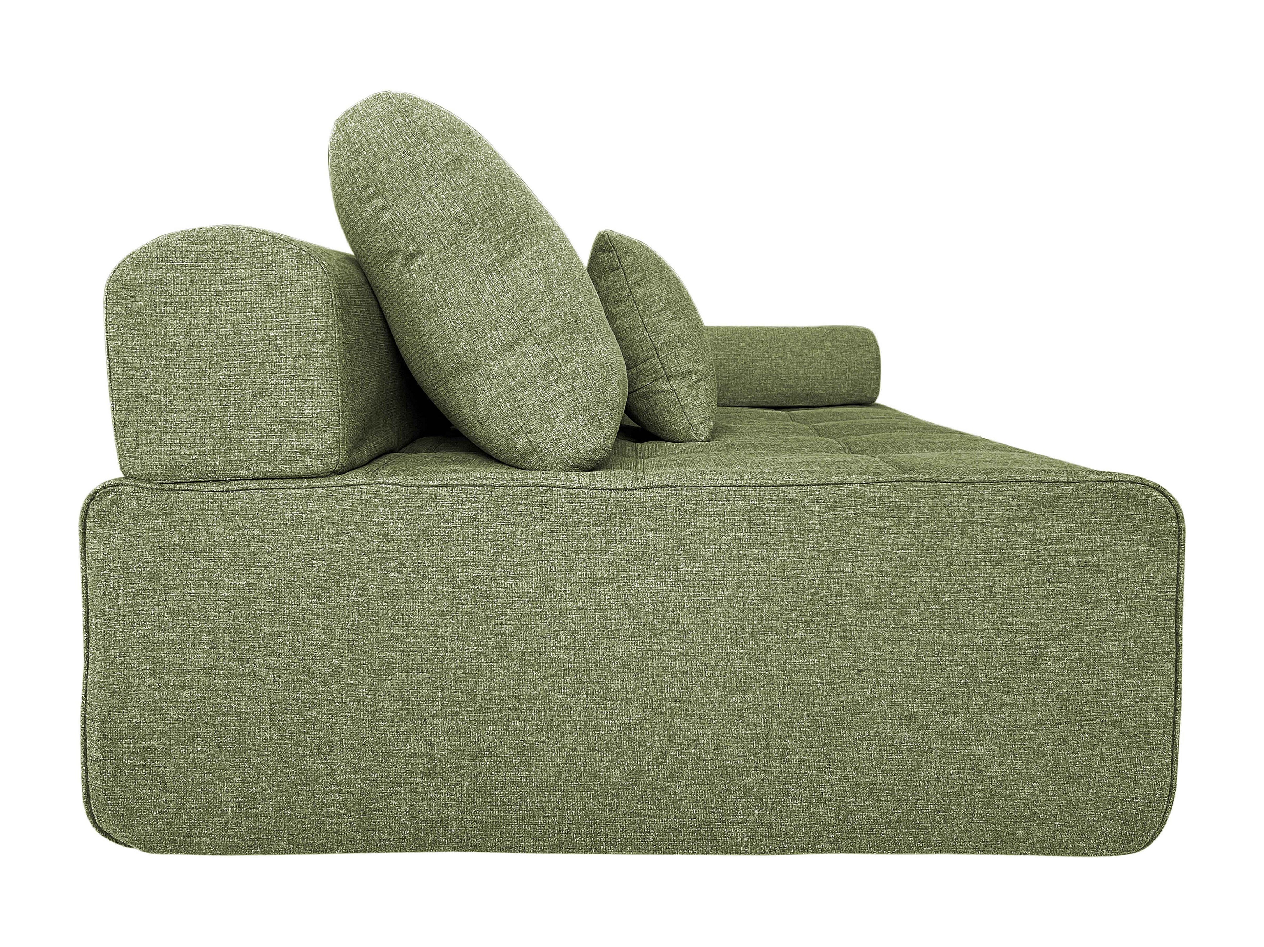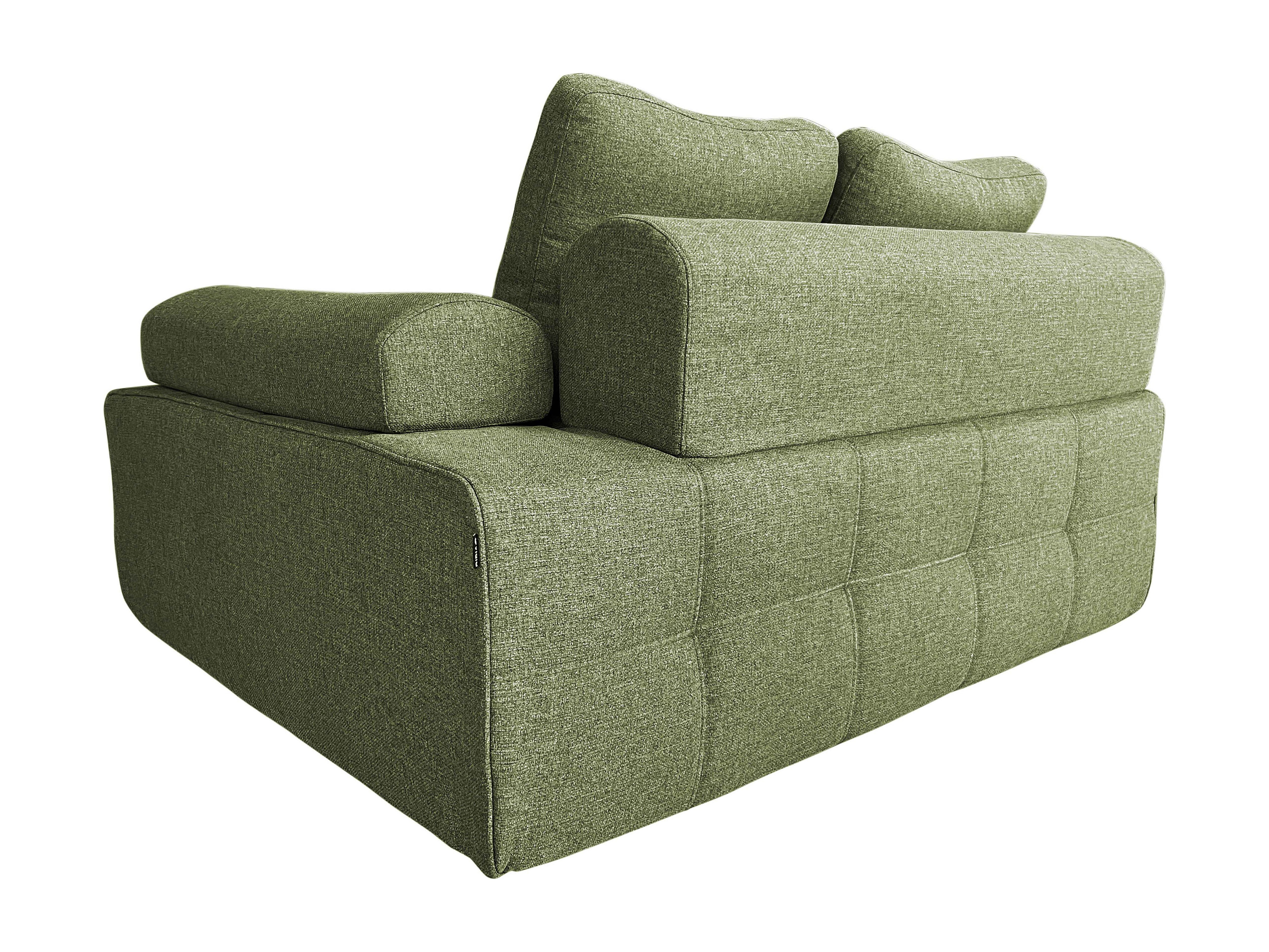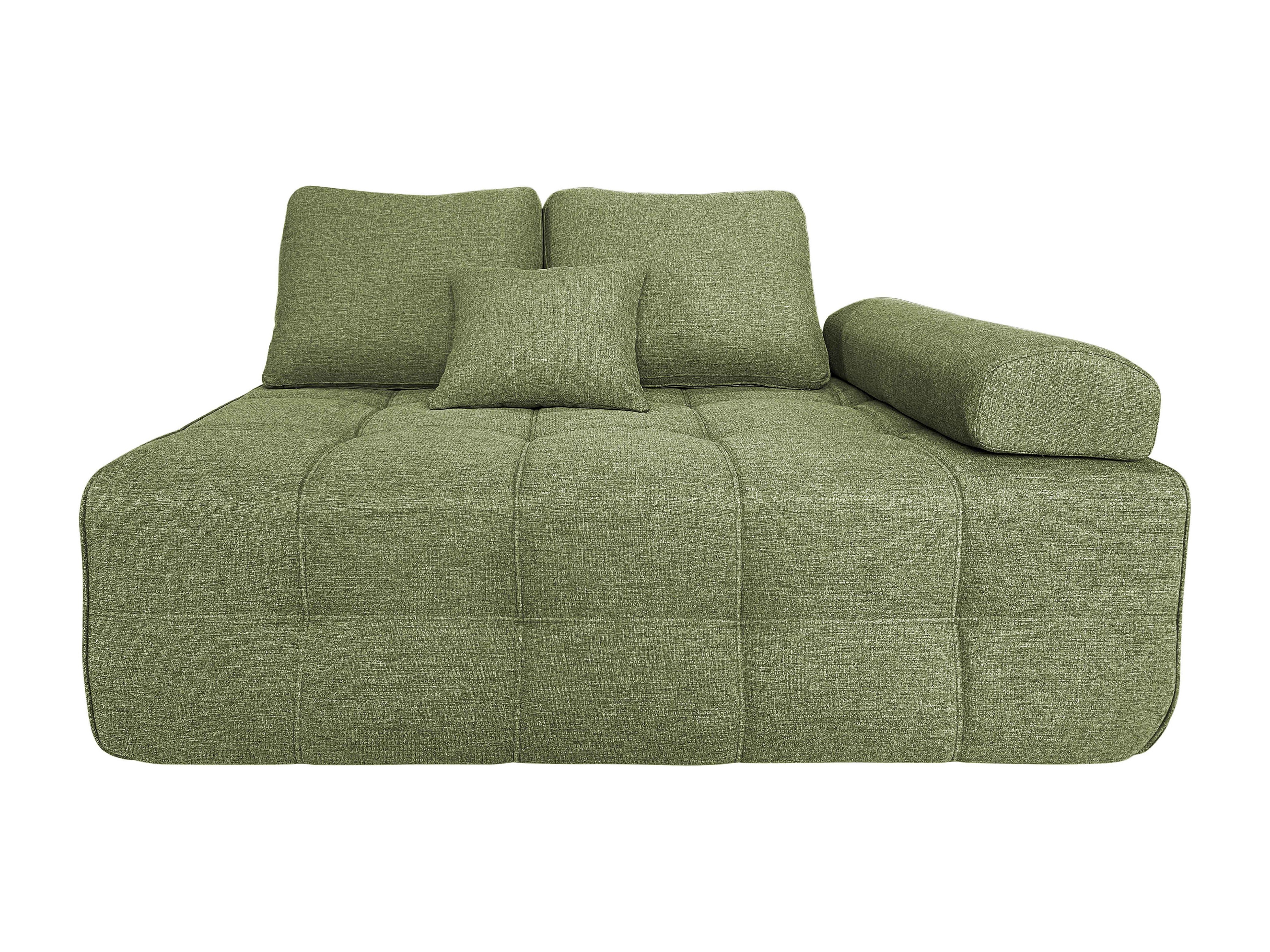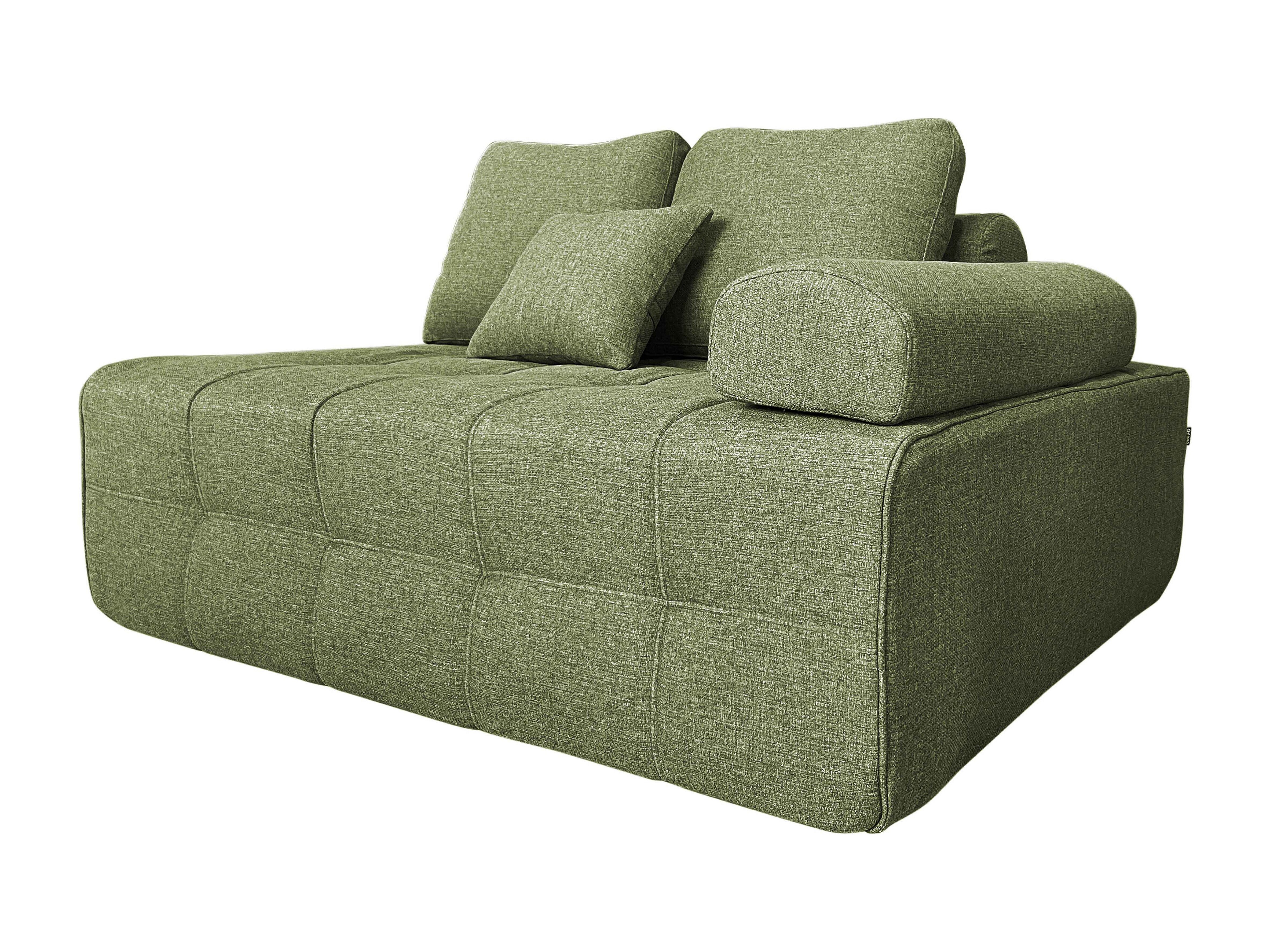 Linkerfauteuil bij modulaire stoffen bank met groene kussens