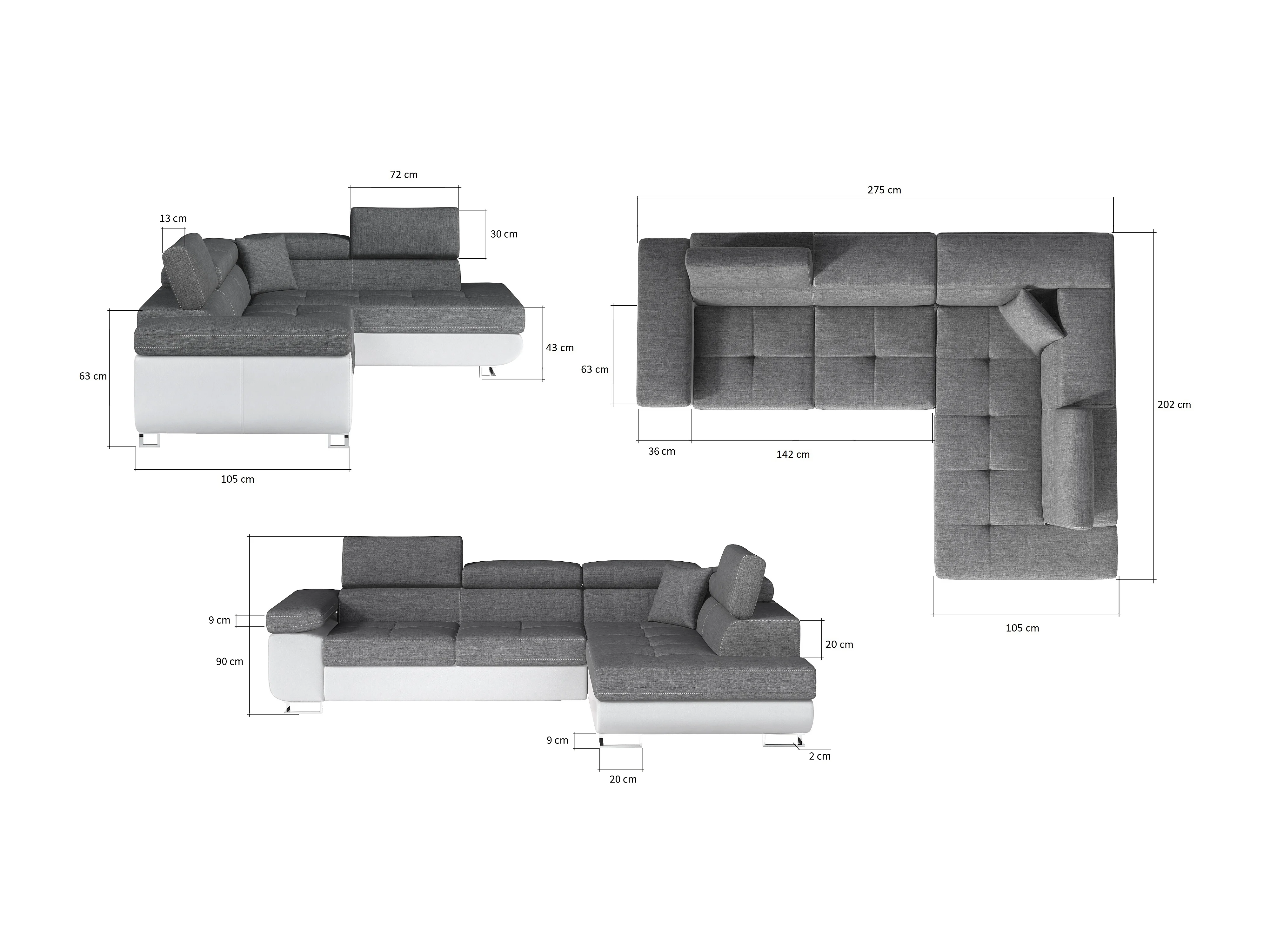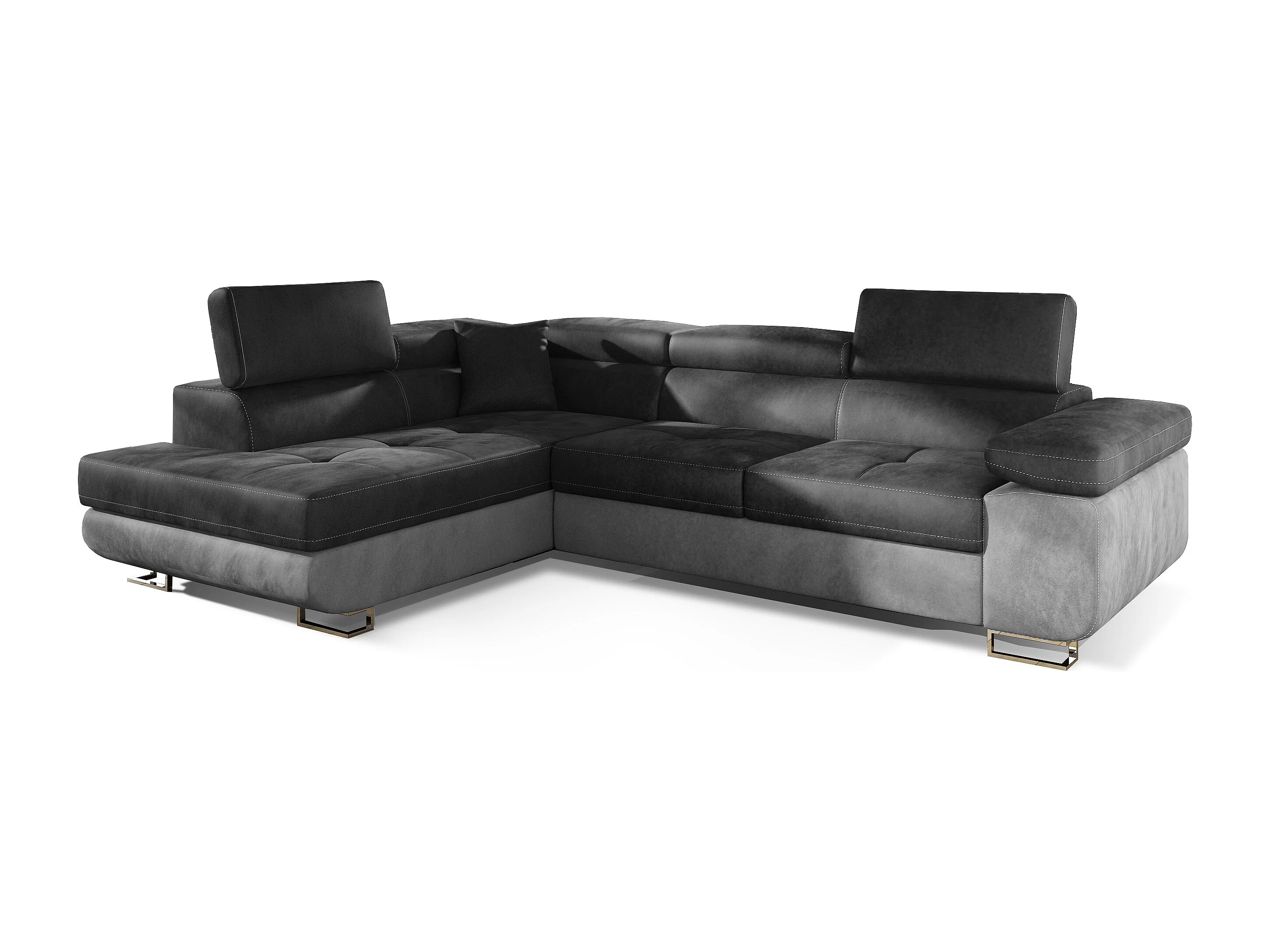 Fluwelen converteerbare hoekbank met opklapbare hoofdsteunen - Marka Collection-Kleur Grijs/donkergrijs-linkerhoek