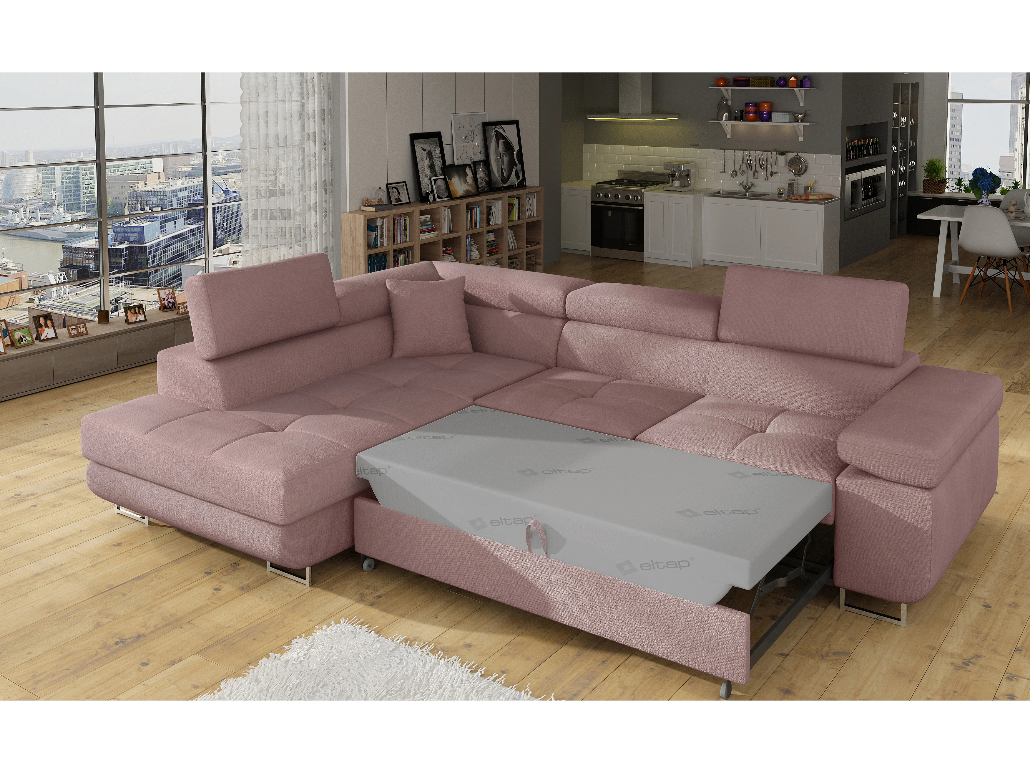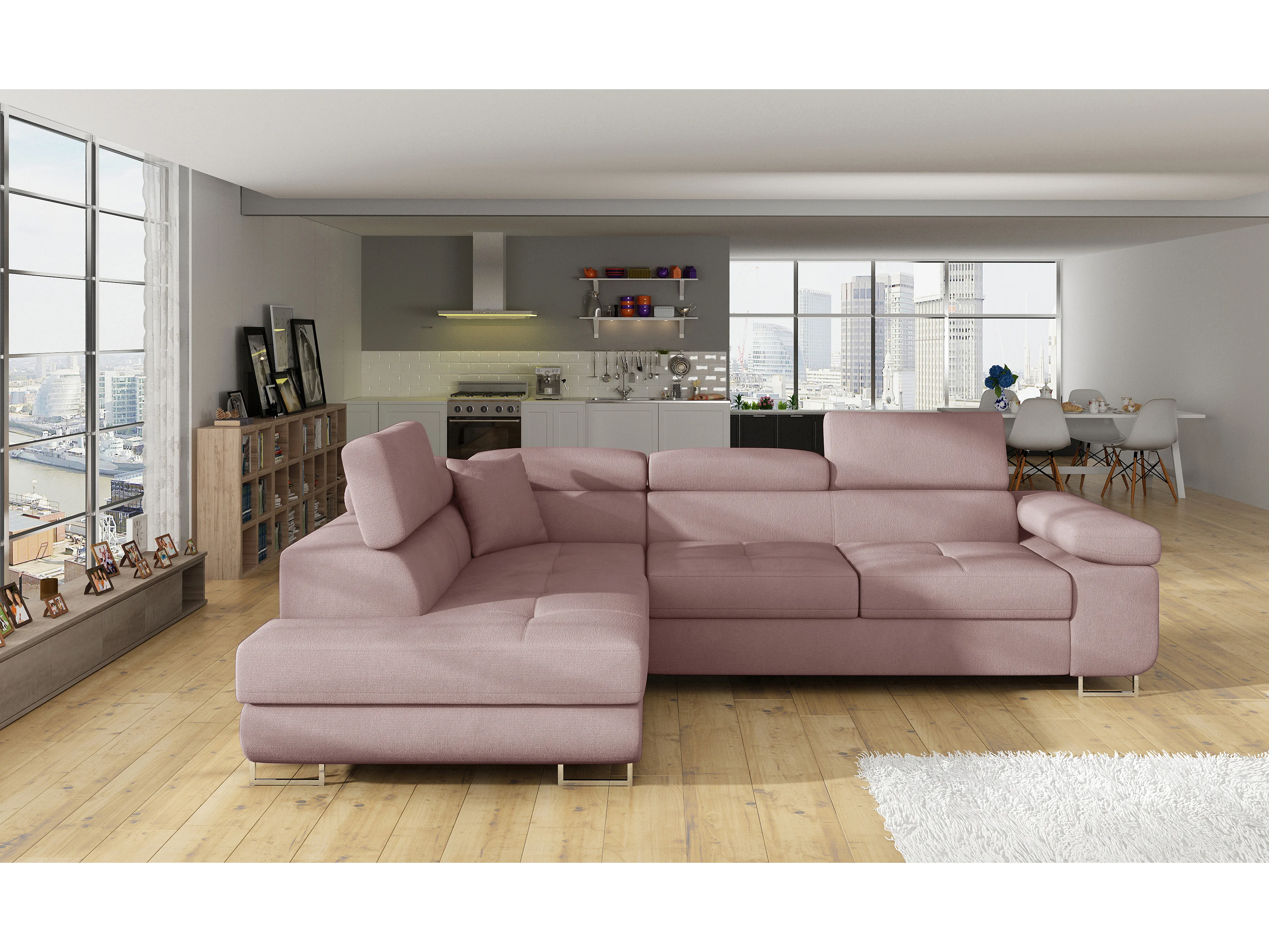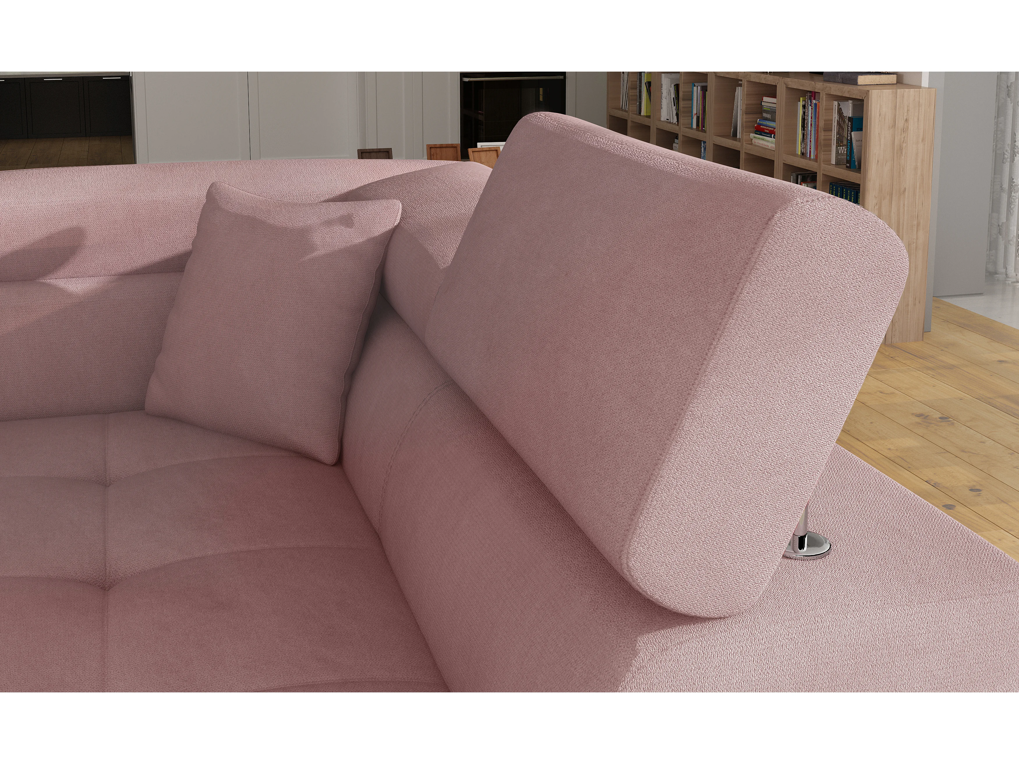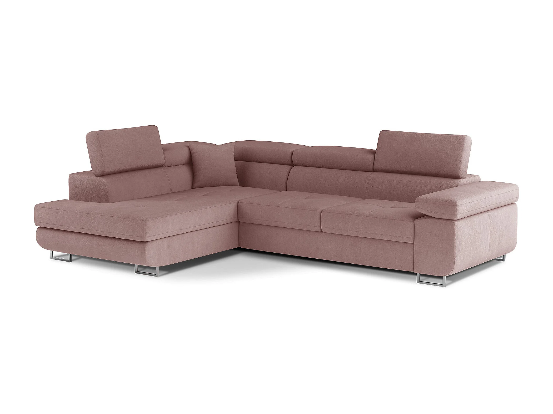 Fluwelen converteerbare hoekbank met opklapbare hoofdsteunen - Marka Collection-Kleur Lichtroze-linkerhoek