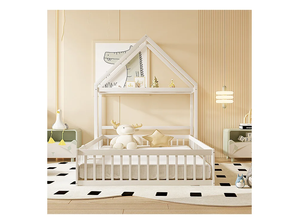 Lit enfant 140 x 200, kadre de lit enfant en bois massif avec espace de rangement, porte pleine sécurité, blanc