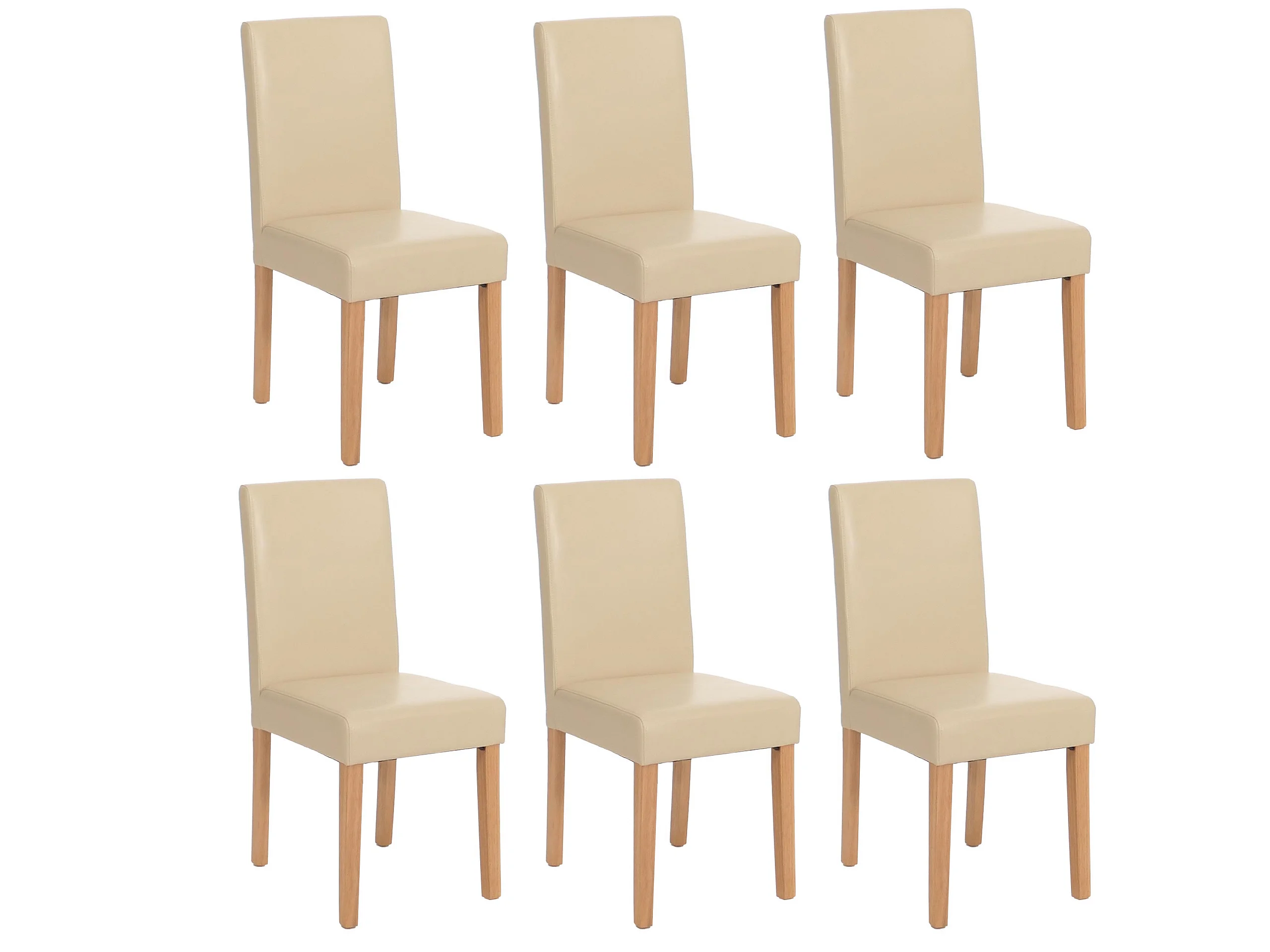 Eetkamerstoel Littau kunstleer 6-delige set, kunstleer, crème, lichtgekleurde poten