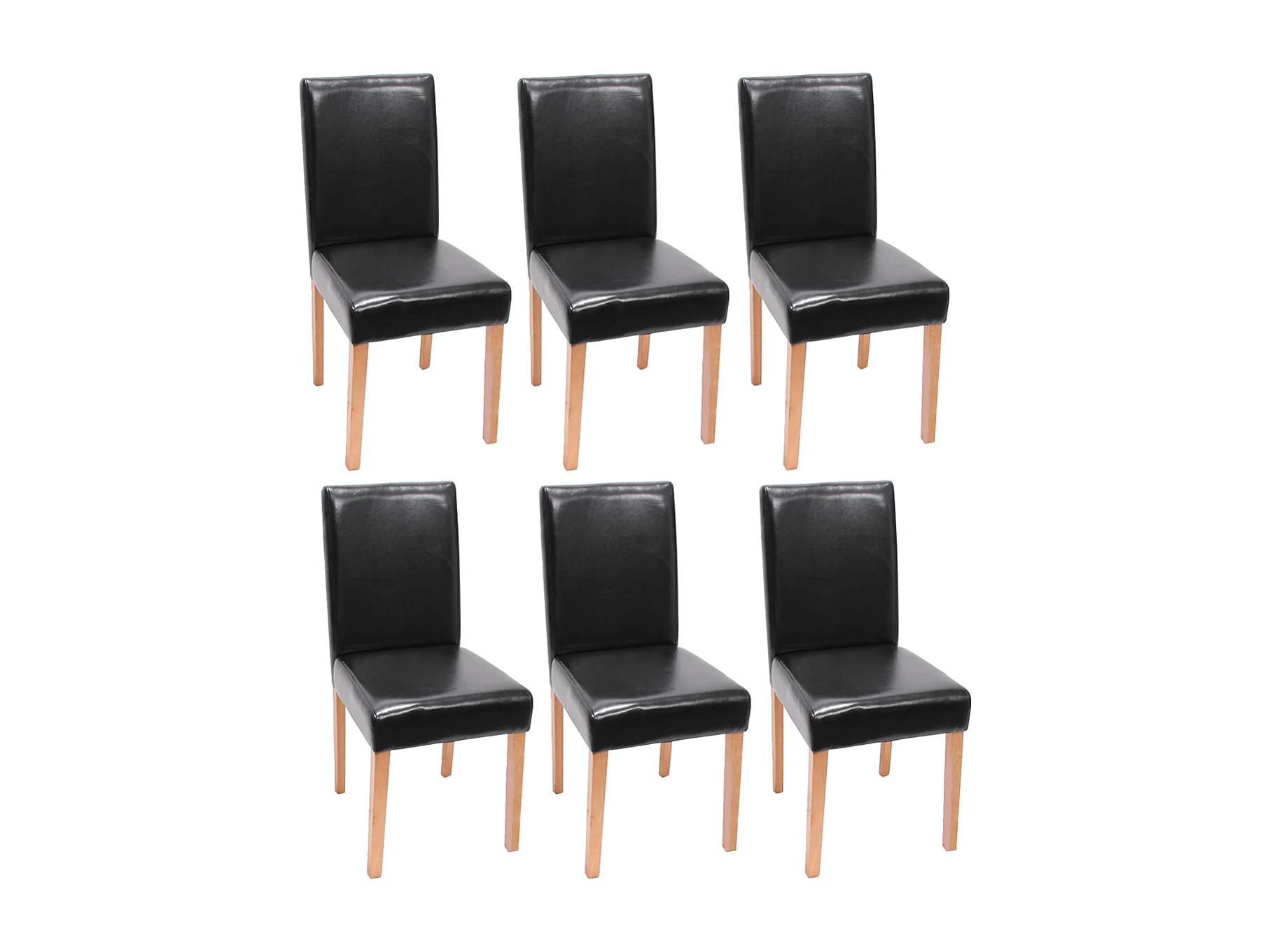 Eetkamerstoel Littau kunstleer 6-delige set, kunstleer, zwart, lichtgekleurde poten