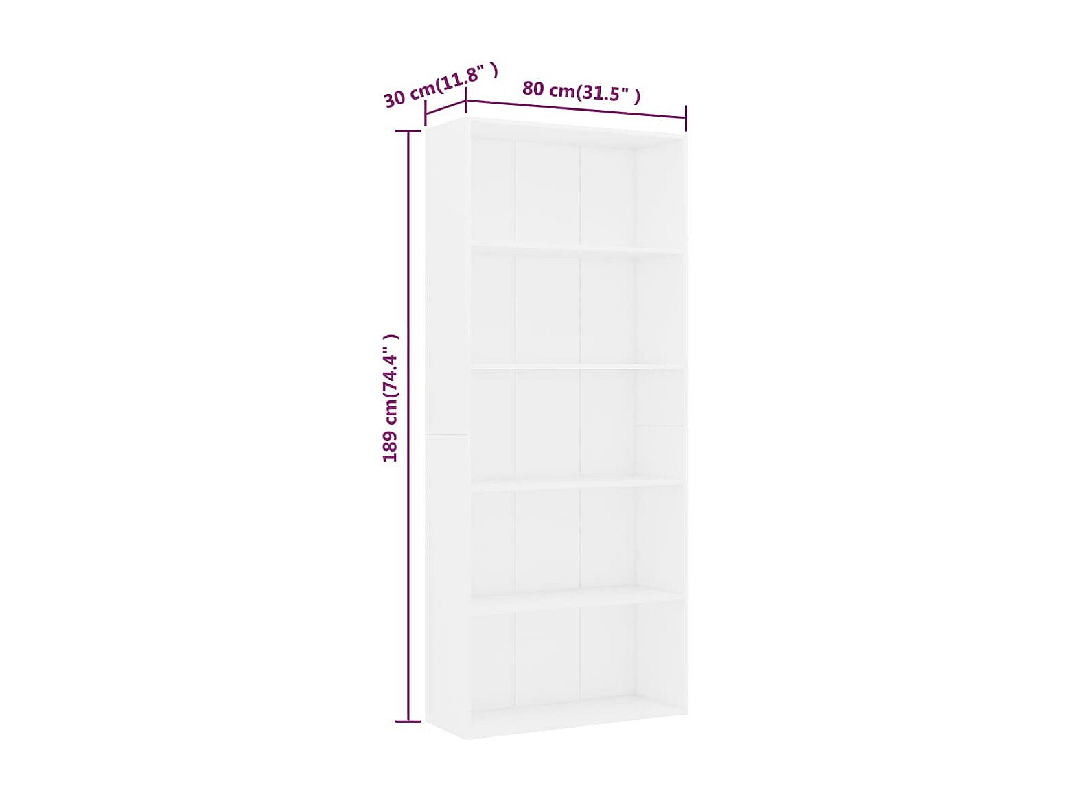 Loïc Boekenkast met 5 schappen 80x30x189 cm bewerkt hout wit