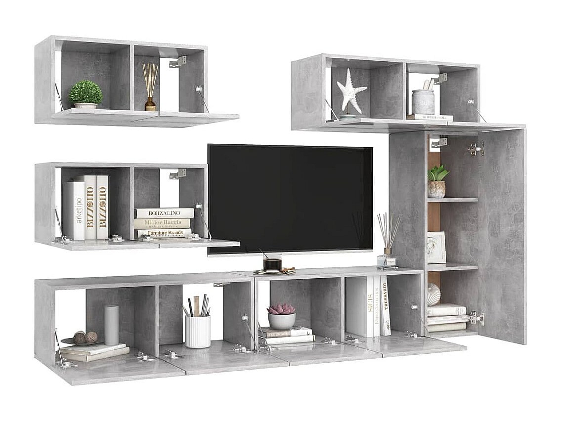 Lois 6-delige Tv-meubelset bewerkt hout betongrijs