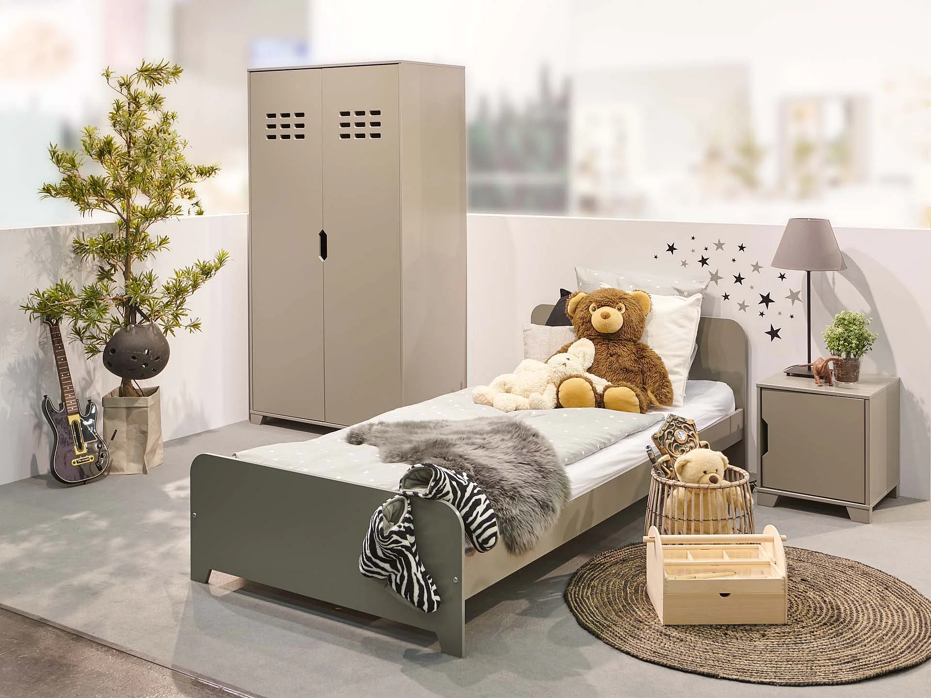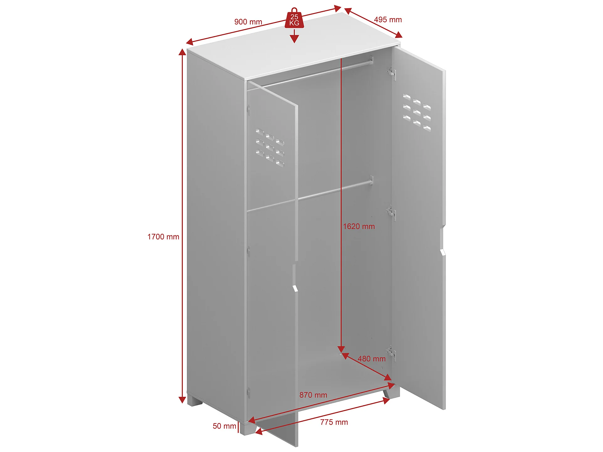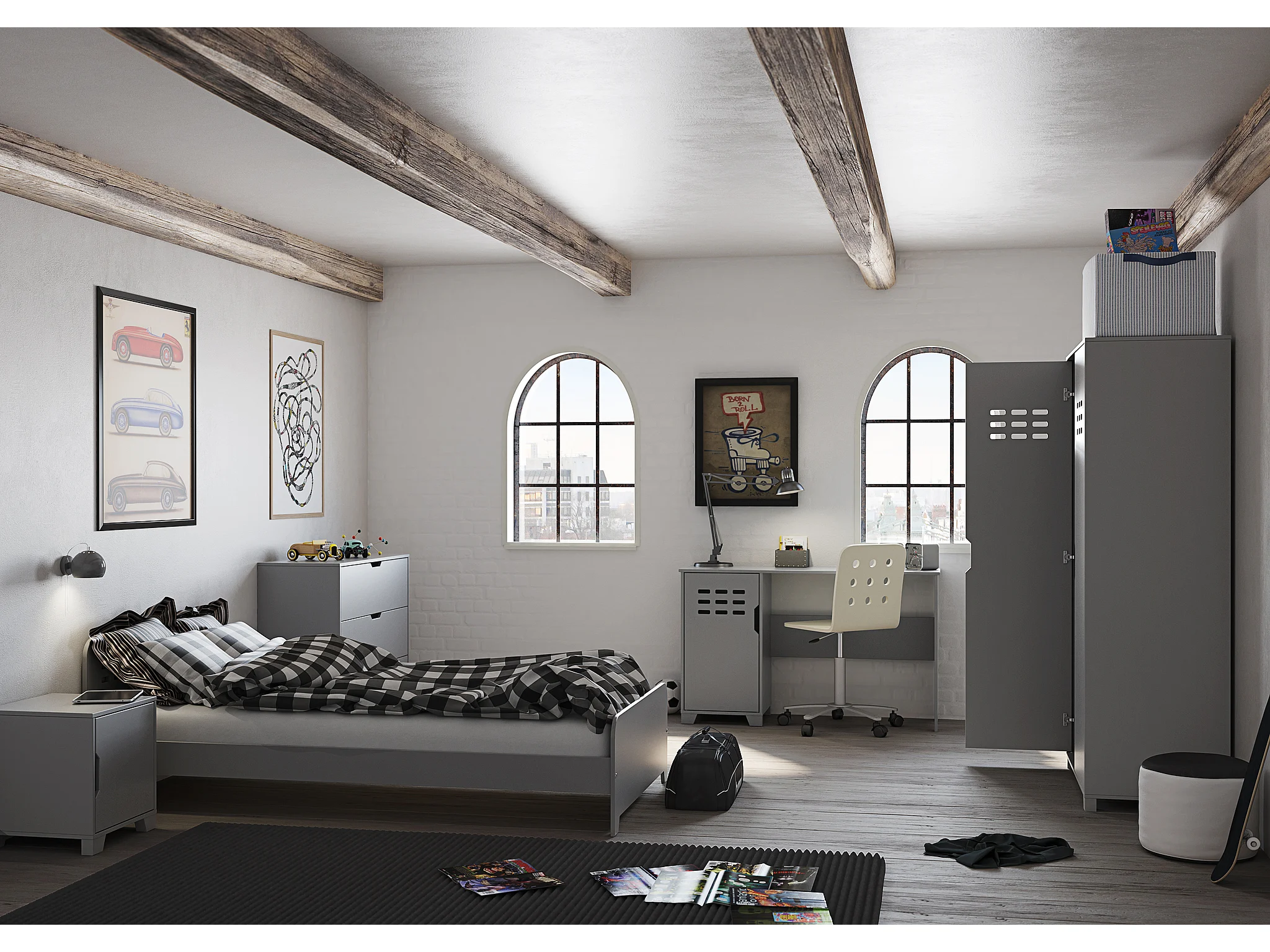 Loke kledingkast met 2 deuren, grijs gelakt.