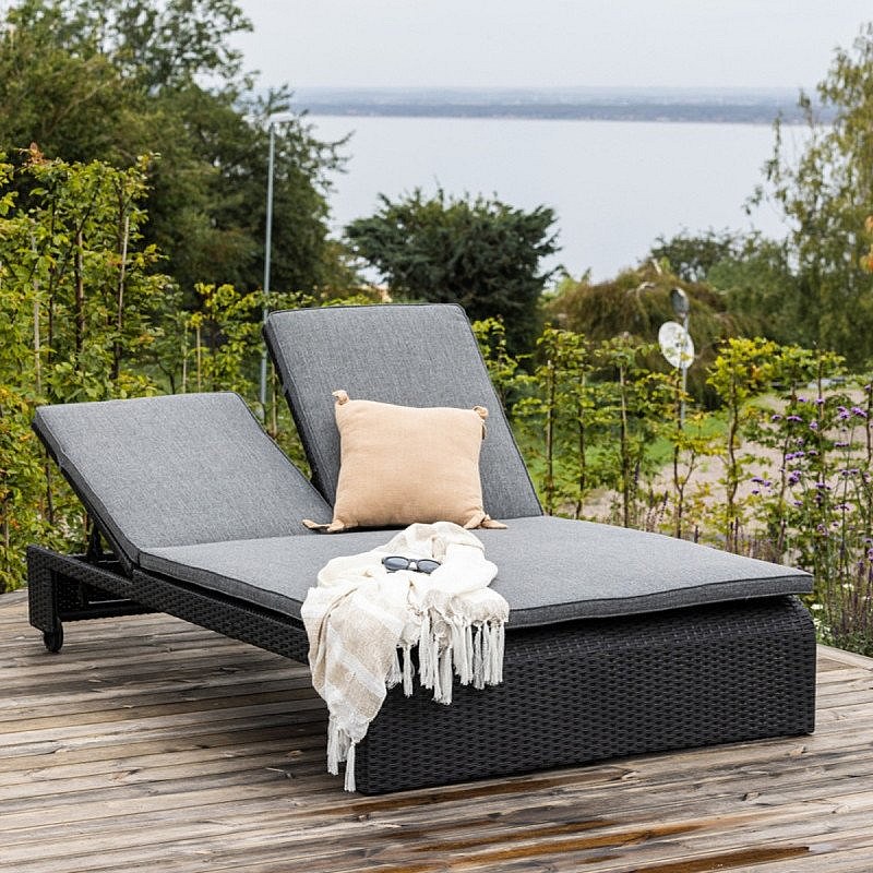 London ligstoel met tuinkussen zwart.