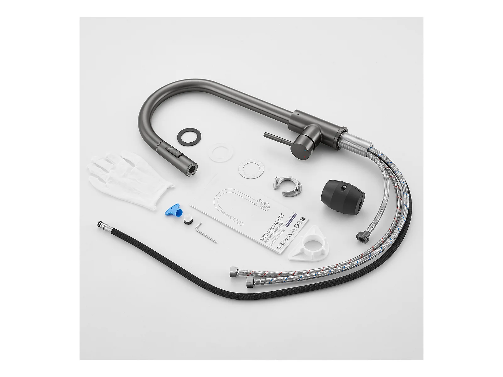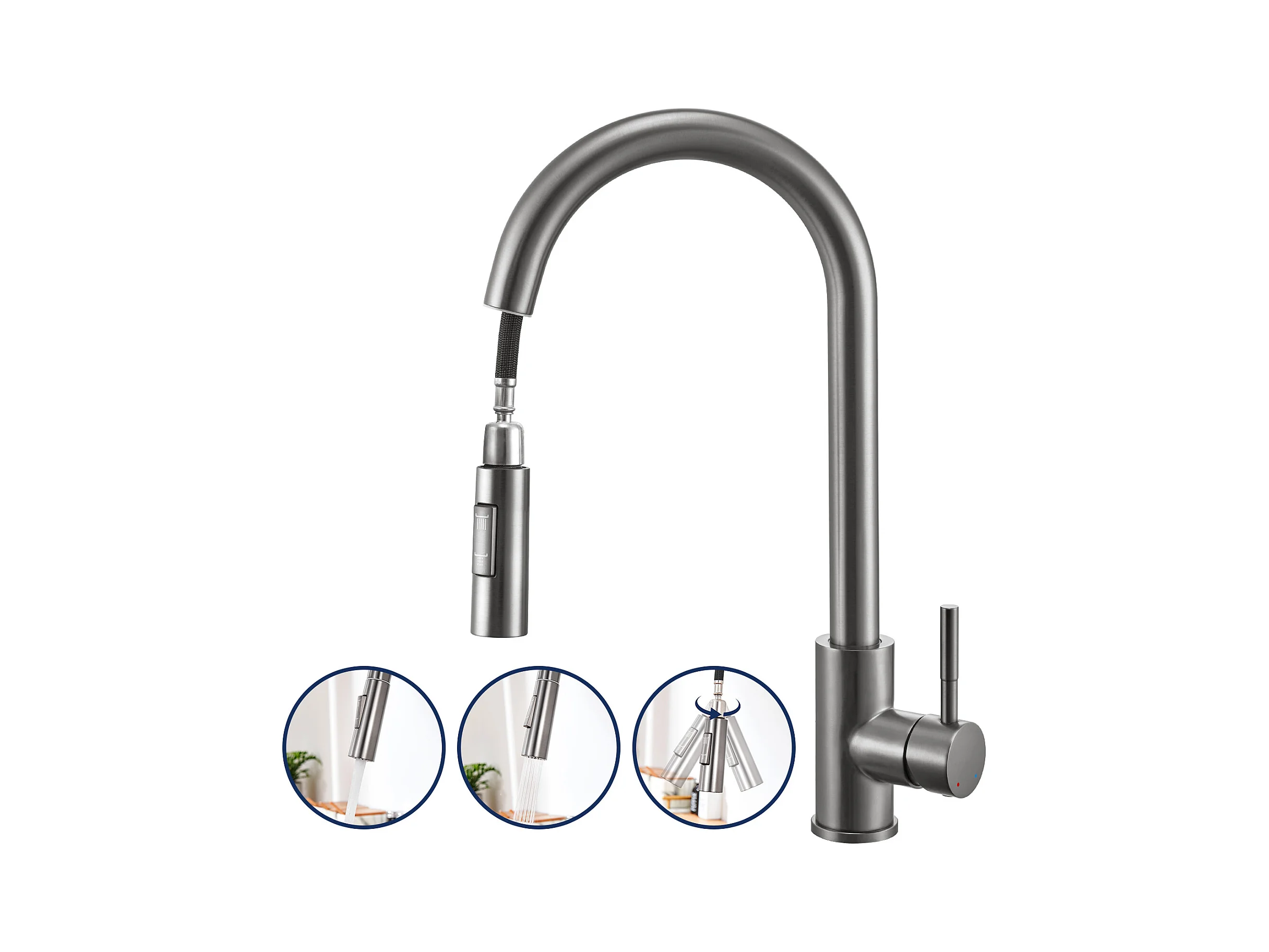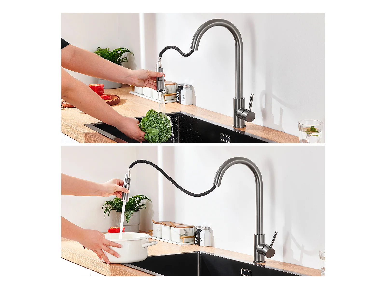 Lonheo Max Keukenkraan Grijs met 2 Functies Uittrekbare Handdouche 360° Draaibare Keukenmengkraan Roestvrij Staal, EU Model