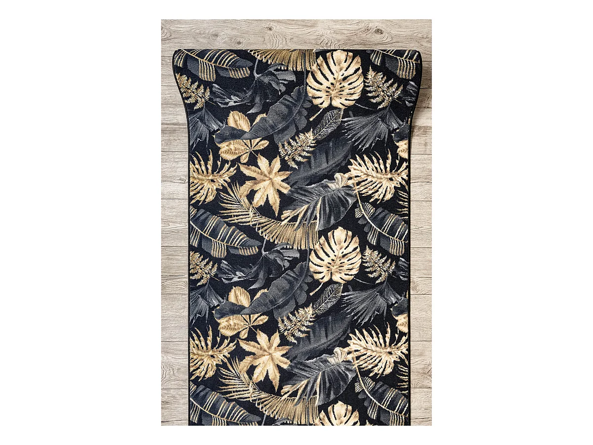 Loper antislip MONSTERA Bladeren, gom goud 100x470 cm
