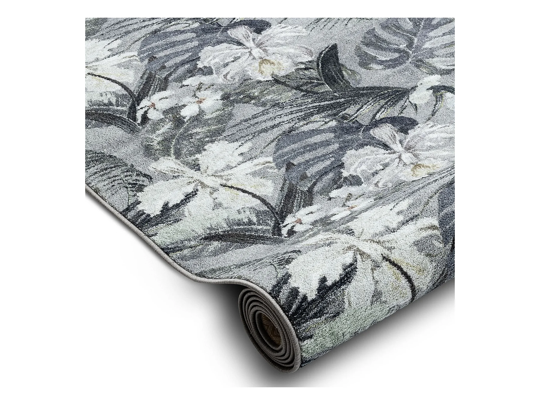 Loper antislip MONSTERA Bladeren, gom grijs 67x900 cm