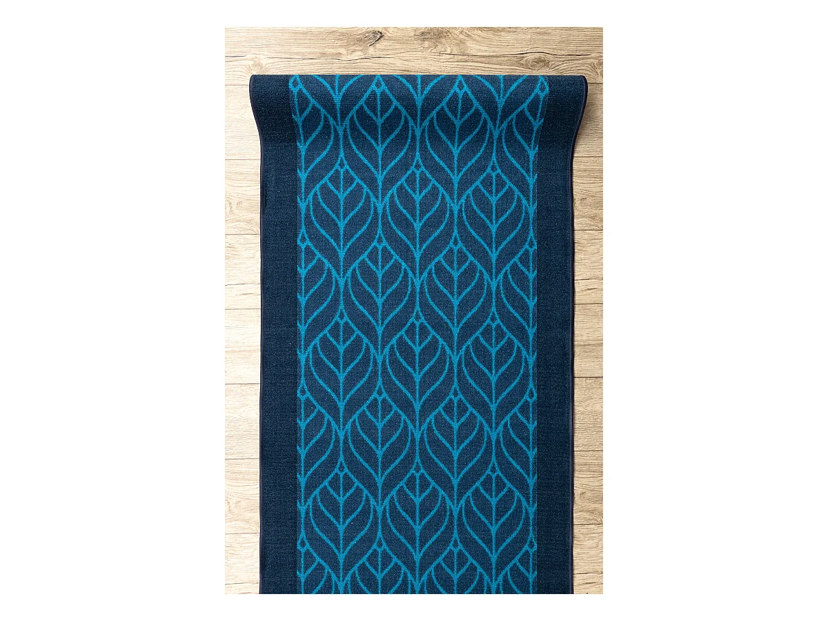 Loper antislip PIÓRA veren bladeren, gom marineblauw 67x800 cm