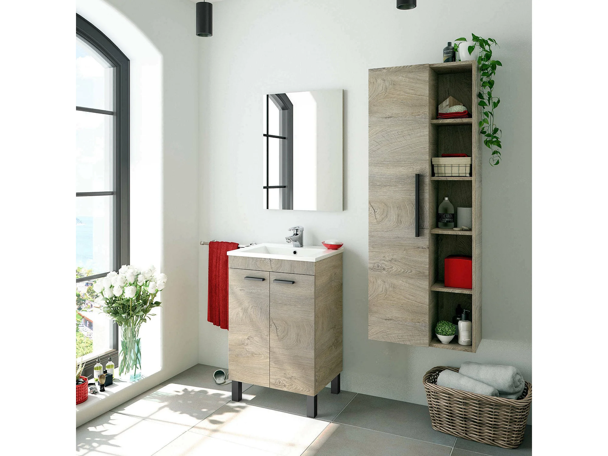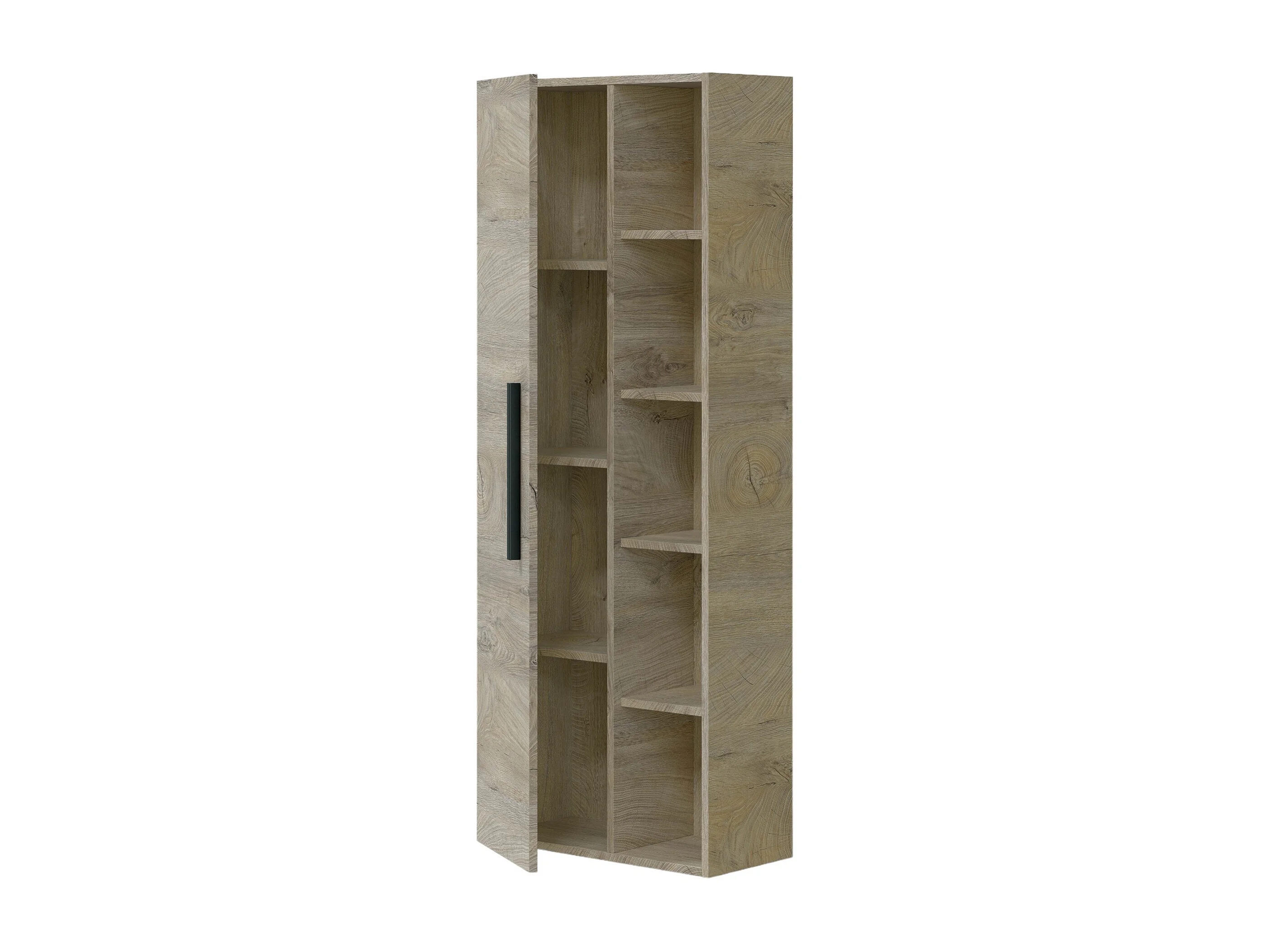 Dmora Kolomkast Losangeles 25x51x135h cm Bruin Eiken 7 Legplanken Modulair, Deur Open