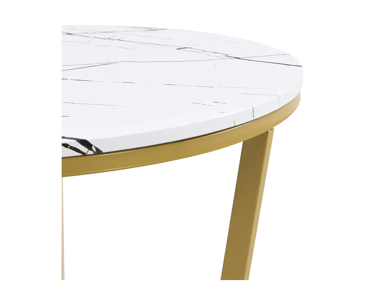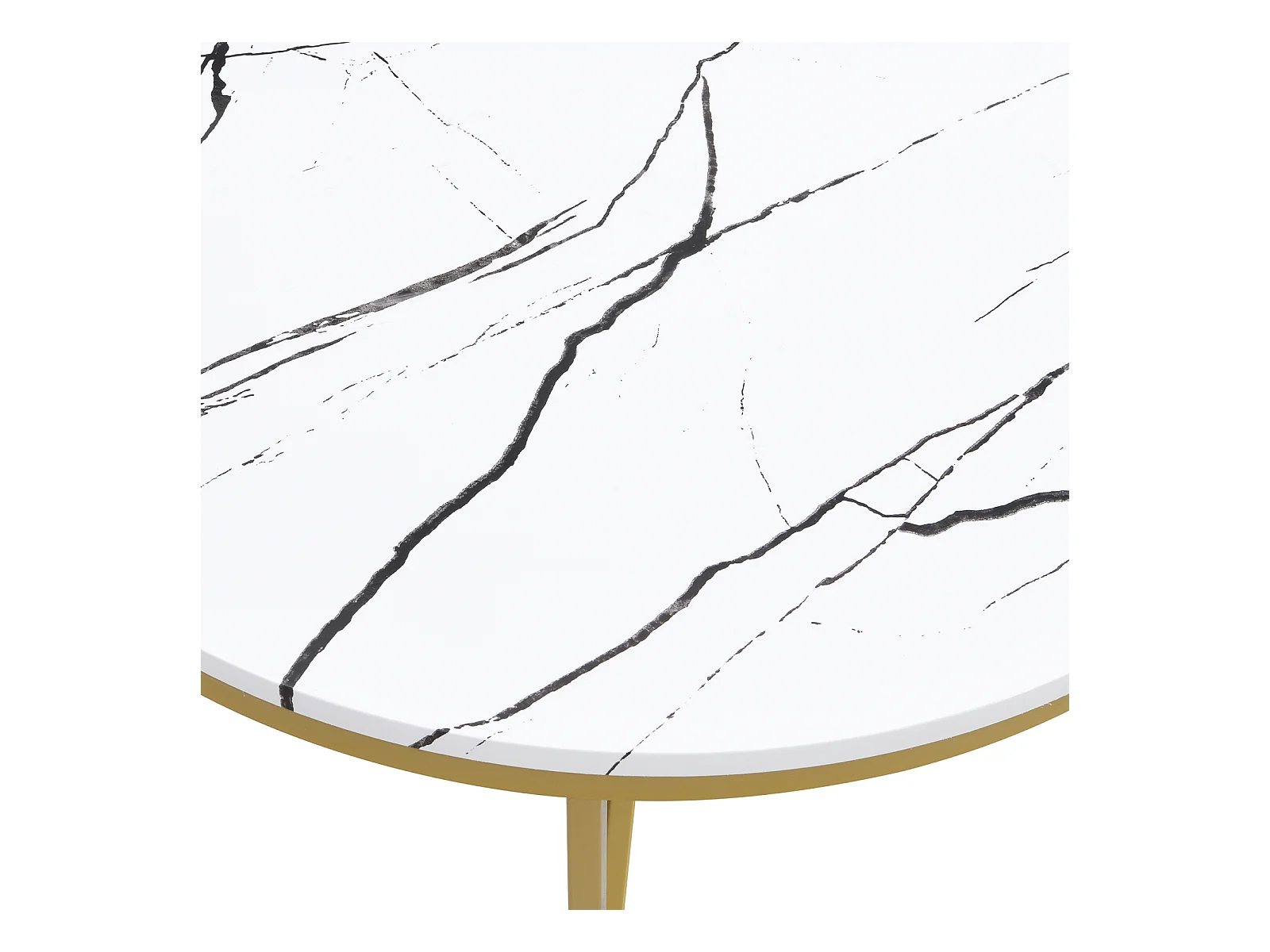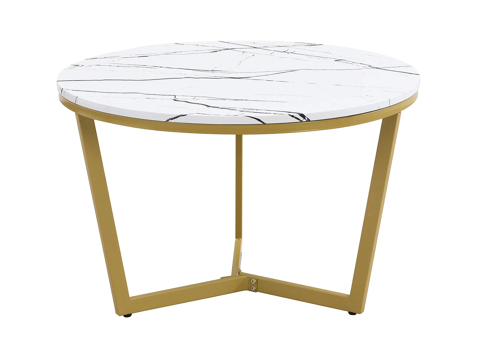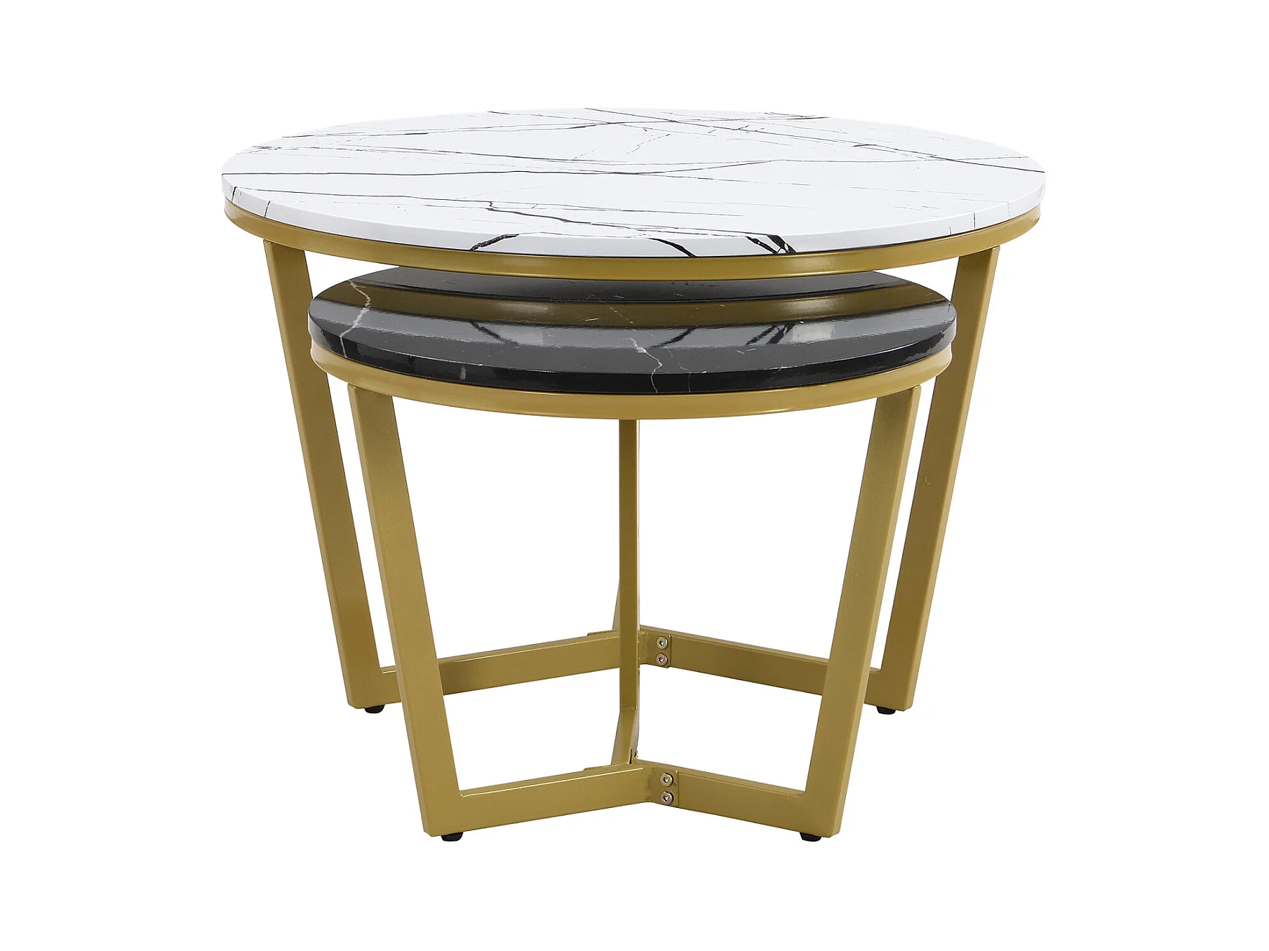 Set van 2 in elkaar passende salontafels, elegante modulaire, marmeren effect bijzettafel, gouden metalen structuur, MDF, wit en zwart