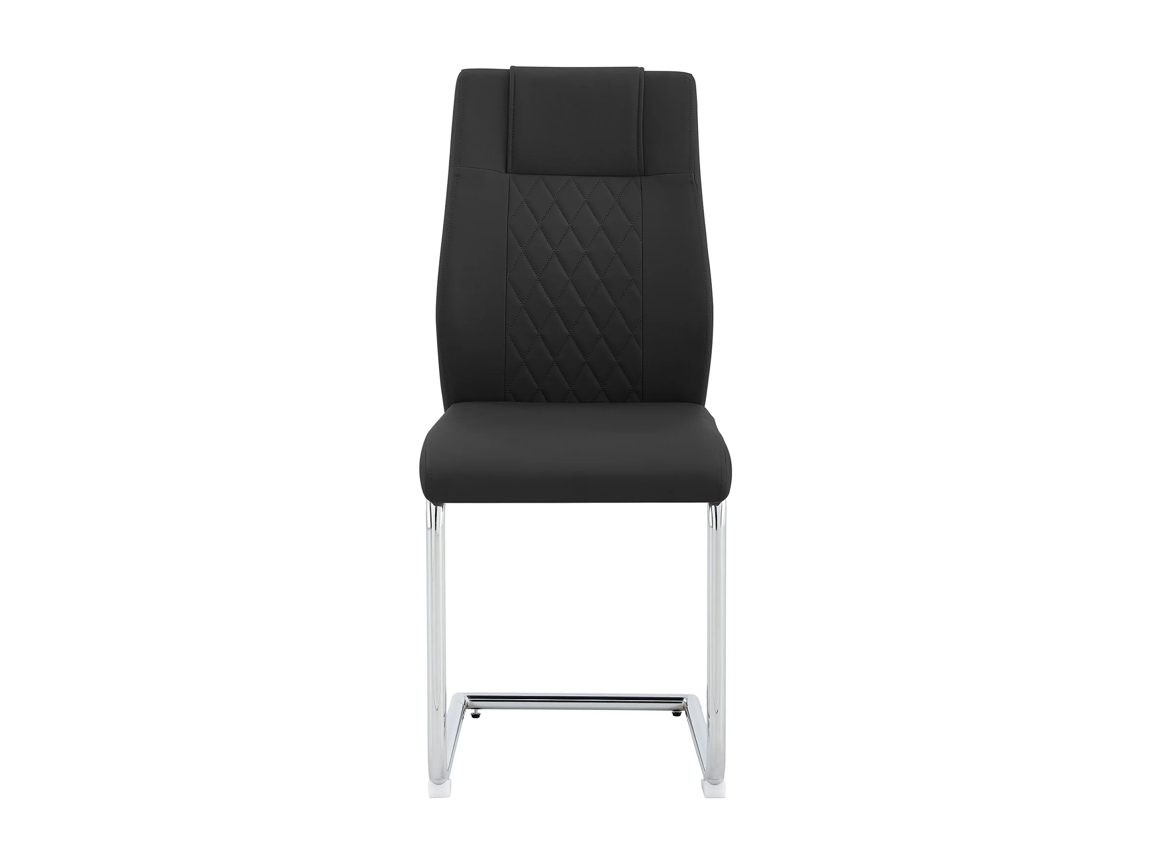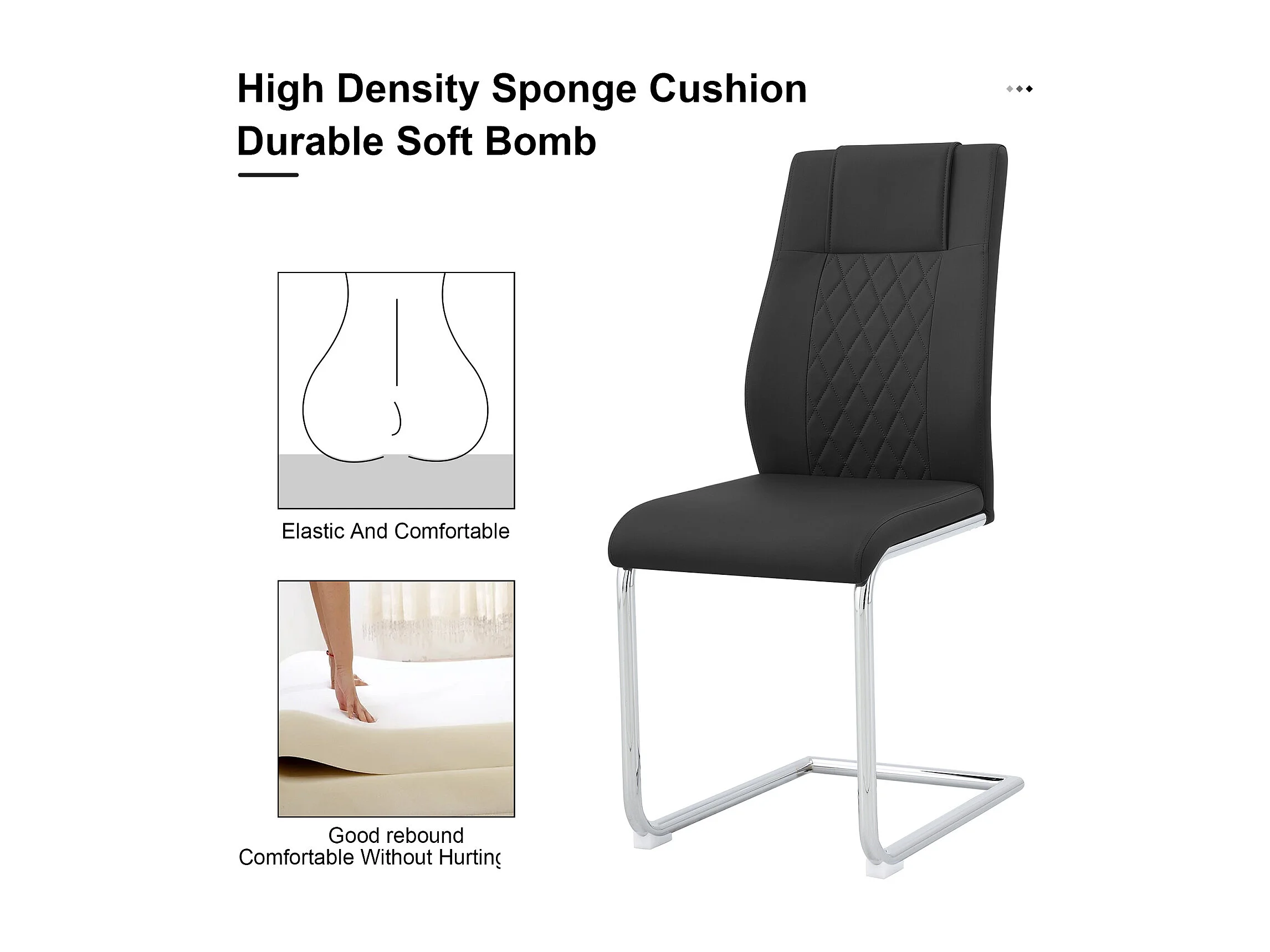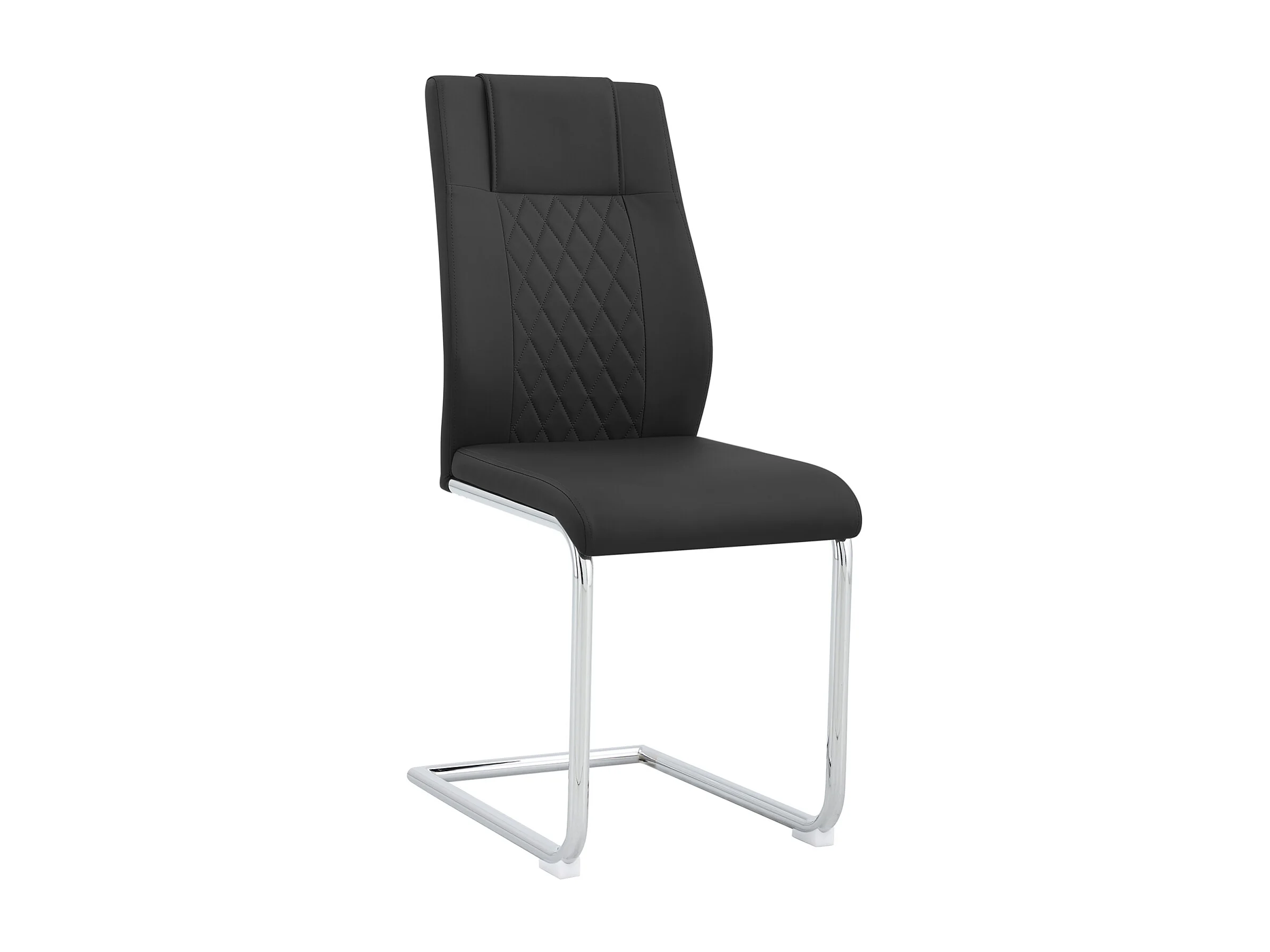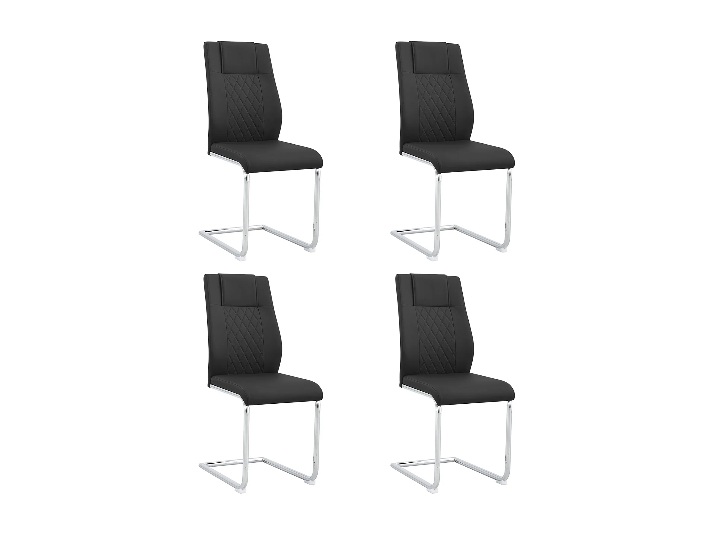 Set van 4 sledestoelstoelen, rugleuning met ruitmotief, verchroomd metalen frame, max. belasting 150 kg, bekleding van imitatieleer, 40x40x96,5 cm, zwart